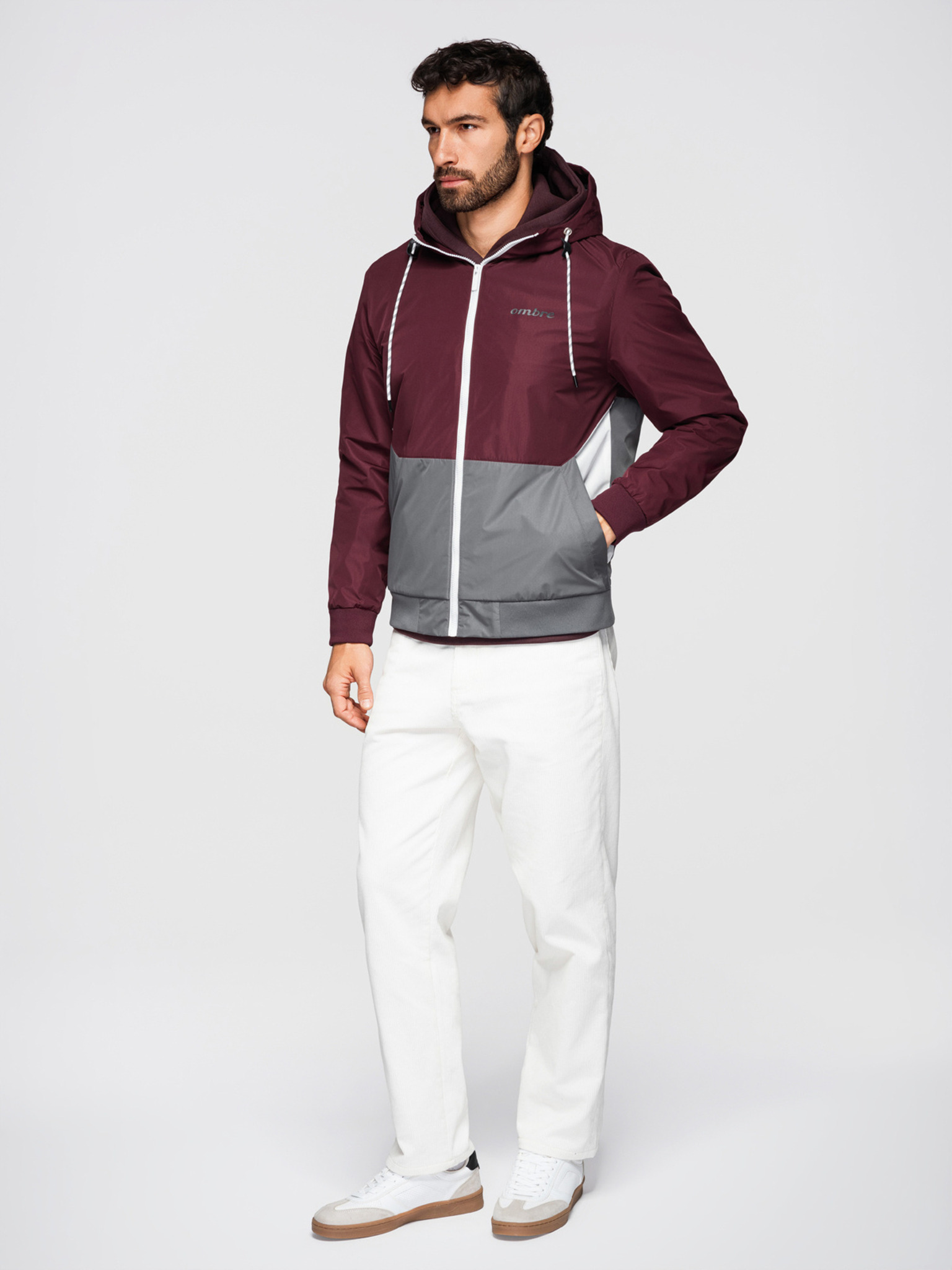 Pánska štruktúrovaná textilná bunda - bordó V2 C642 Ombre Clothing
