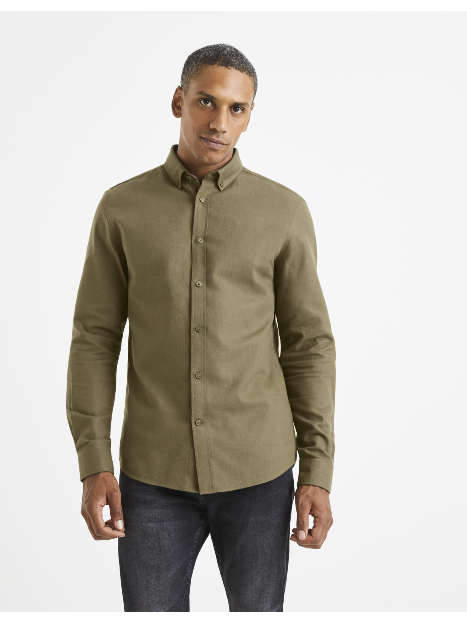 Kaki moška srajca Ombre Clothing
