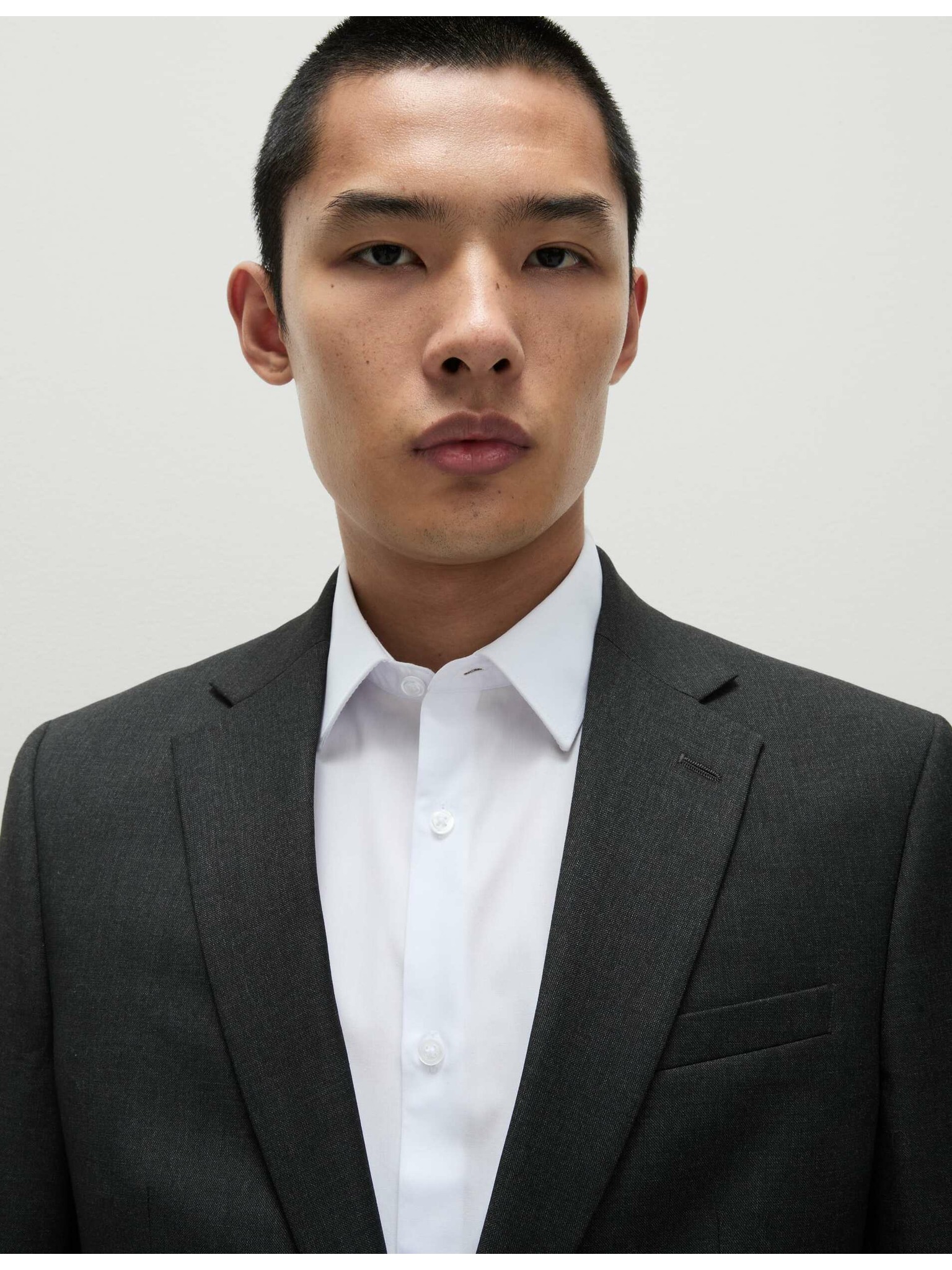Moška platnen srajca z stoječim ovratnikom in žepom REGULAR FIT - kremna