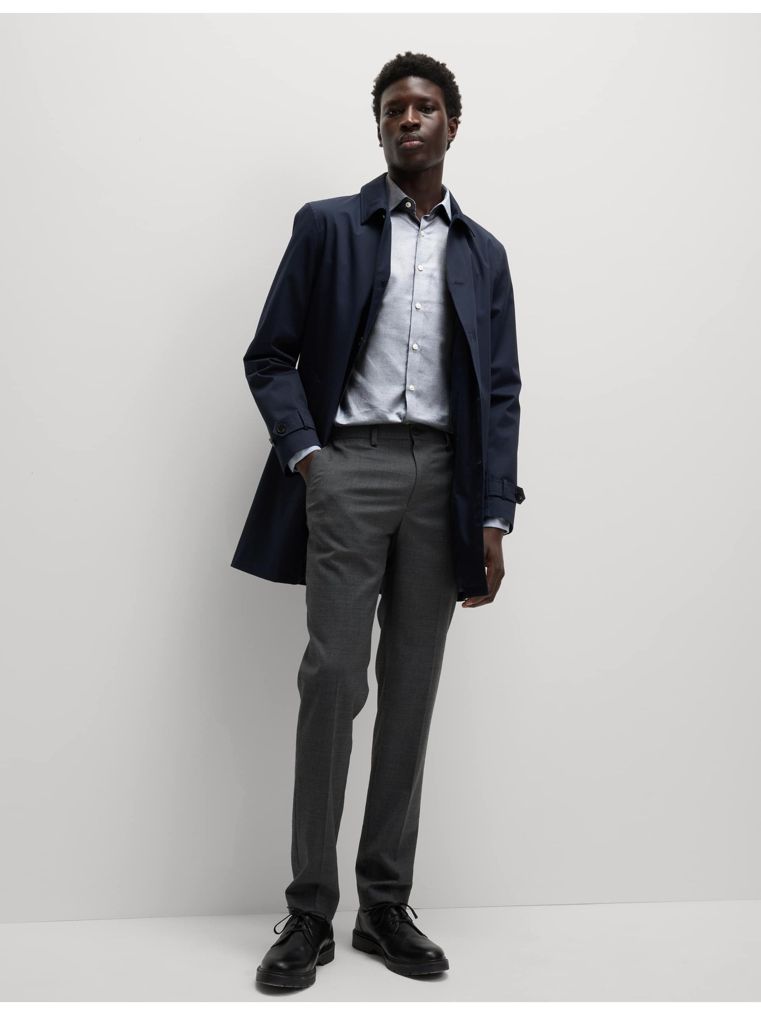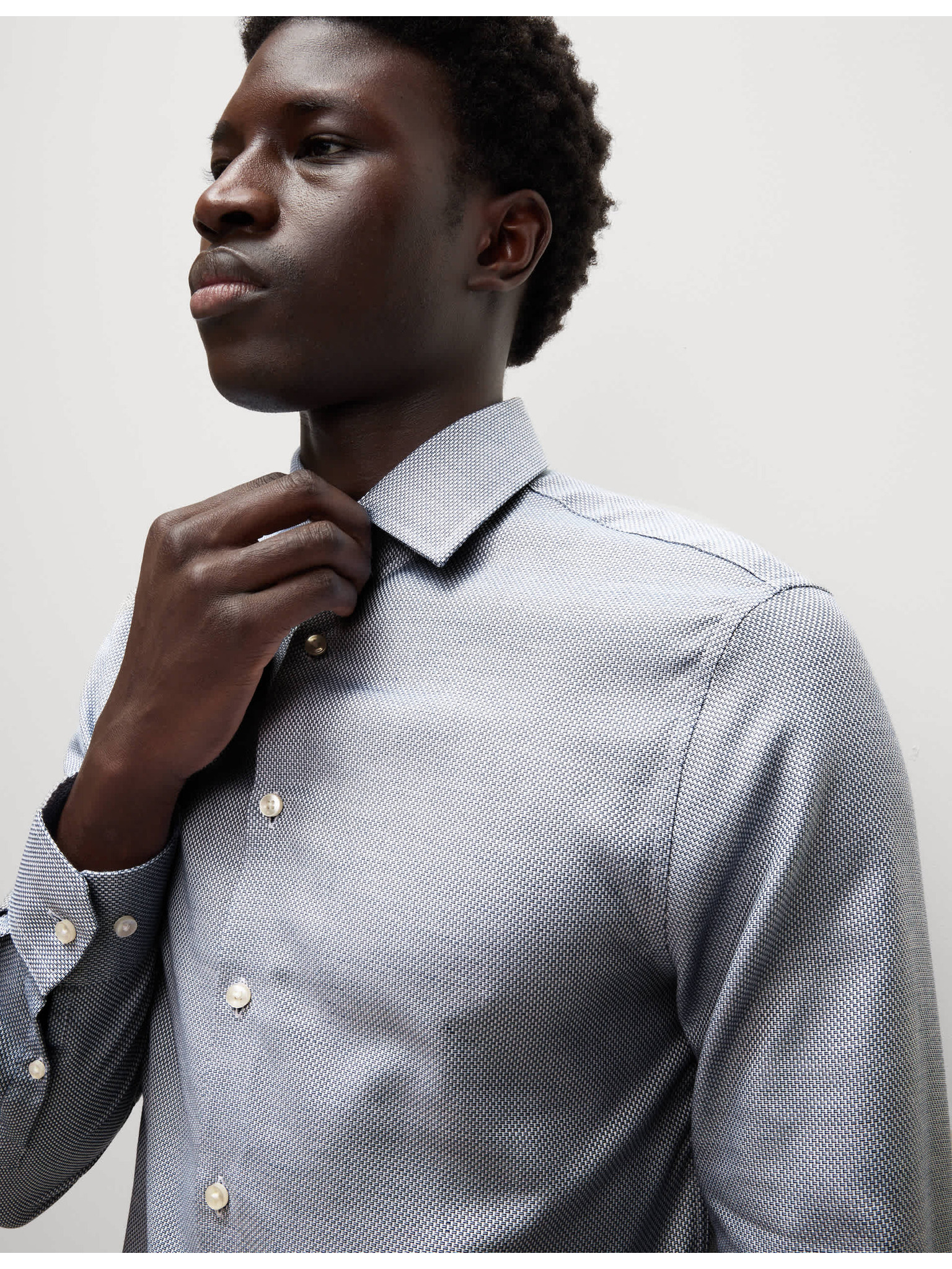 Luksuzna srajca ozkega kroja iz čiste bombaže s teksturo Marks & Spencer siva