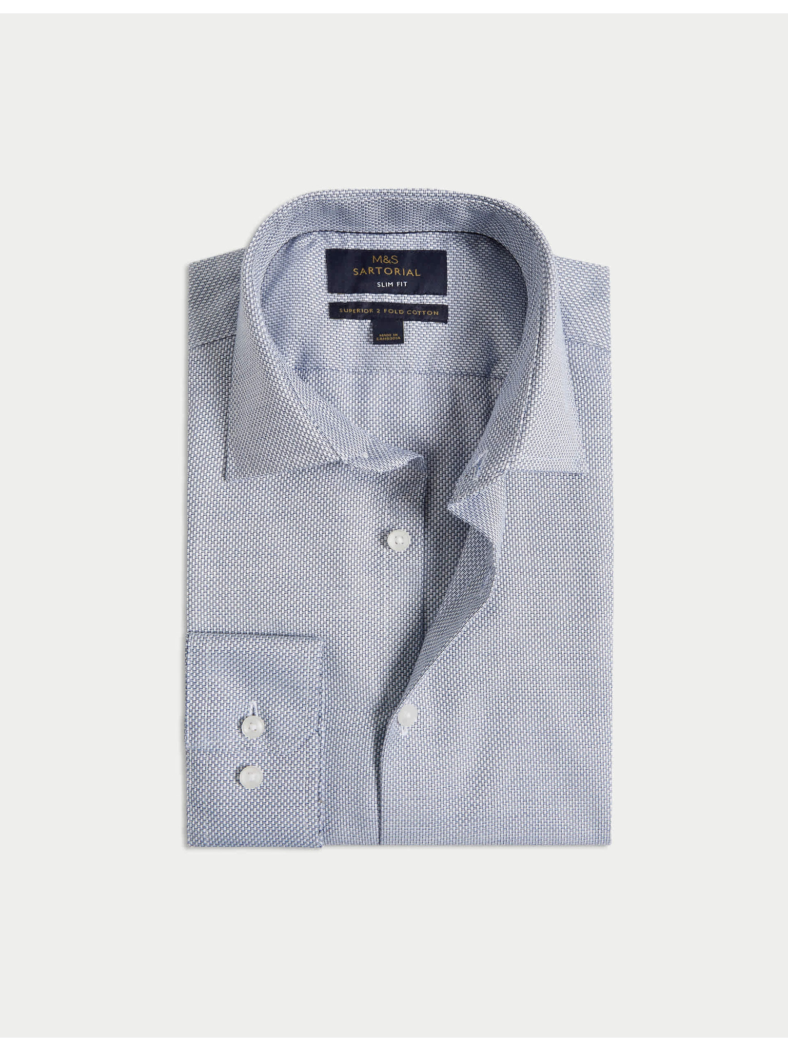 Keperjasta srajca ozkega kroja iz luksuzne bombaže z dvojno manšeto Marks & Spencer mornarsko modra
