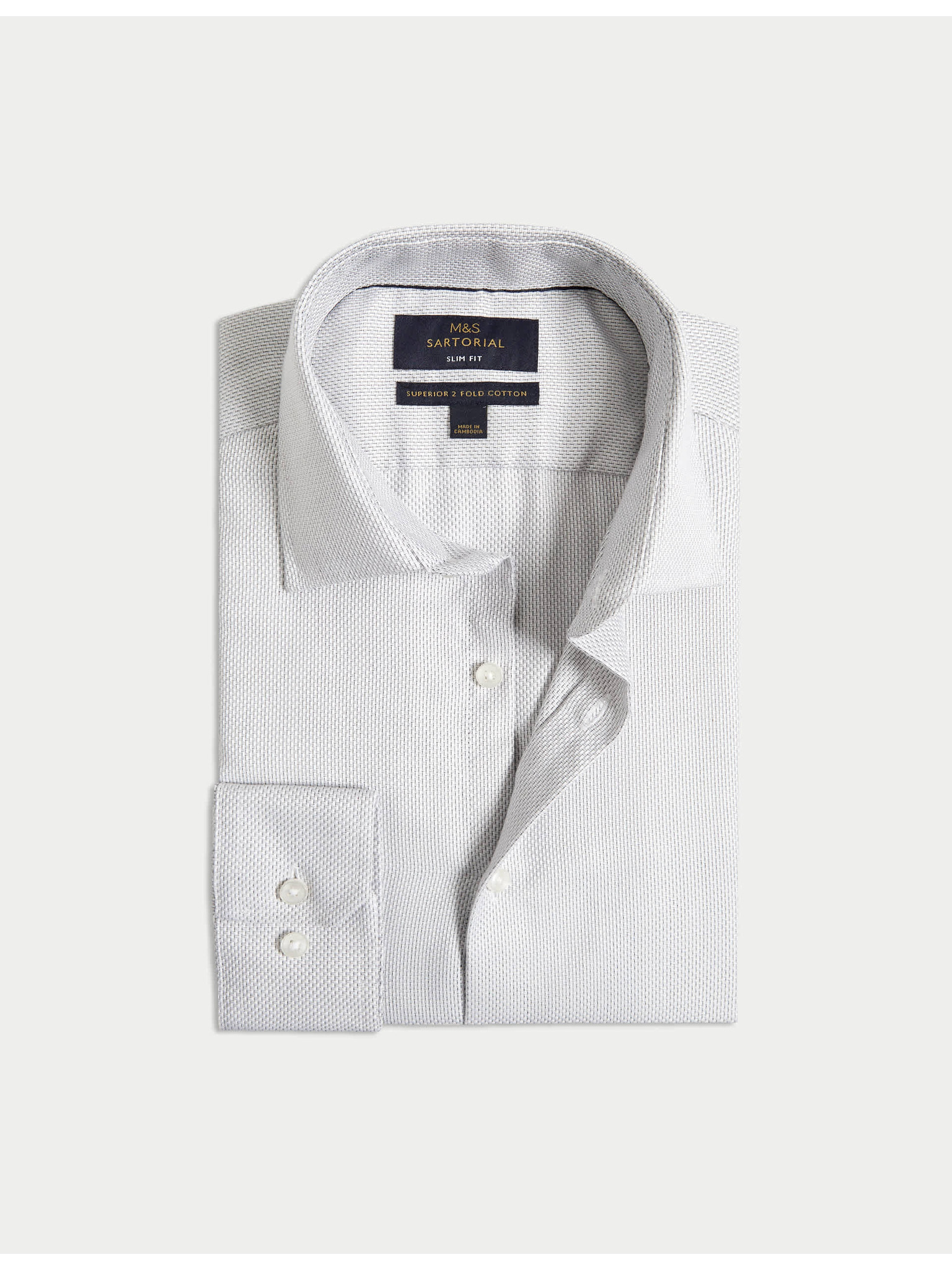 Keperjasta srajca ozkega kroja iz luksuzne bombaže z dvojno manšeto Marks & Spencer mornarsko modra