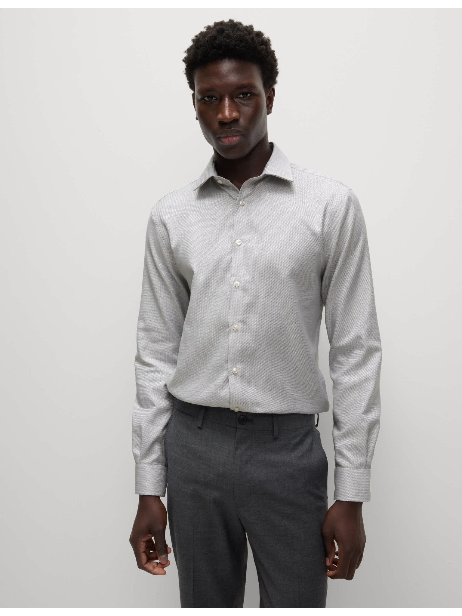 Srajca ozkega kroja iz mešanice bombaža z nezmečkljivo obdelavo Marks & Spencer bela
