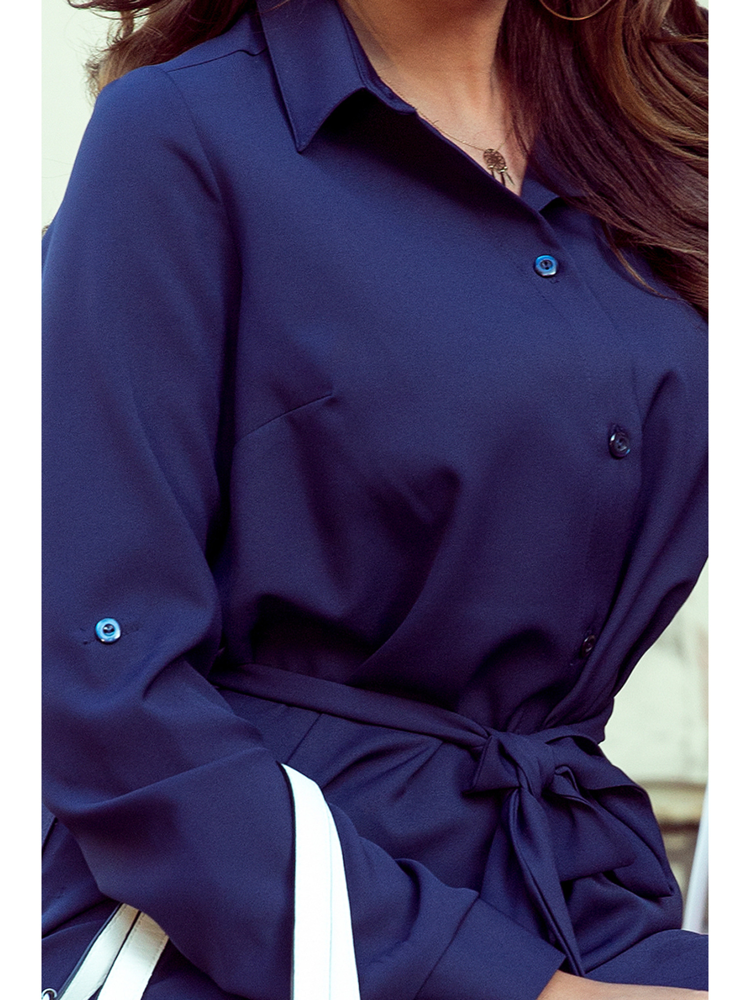 Srajčna obleka z gumbi - temno modra Numoco