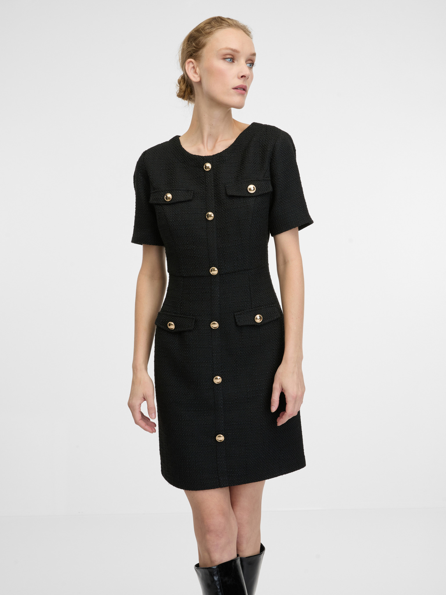 Črna ženska obleka do kolen ORSAY