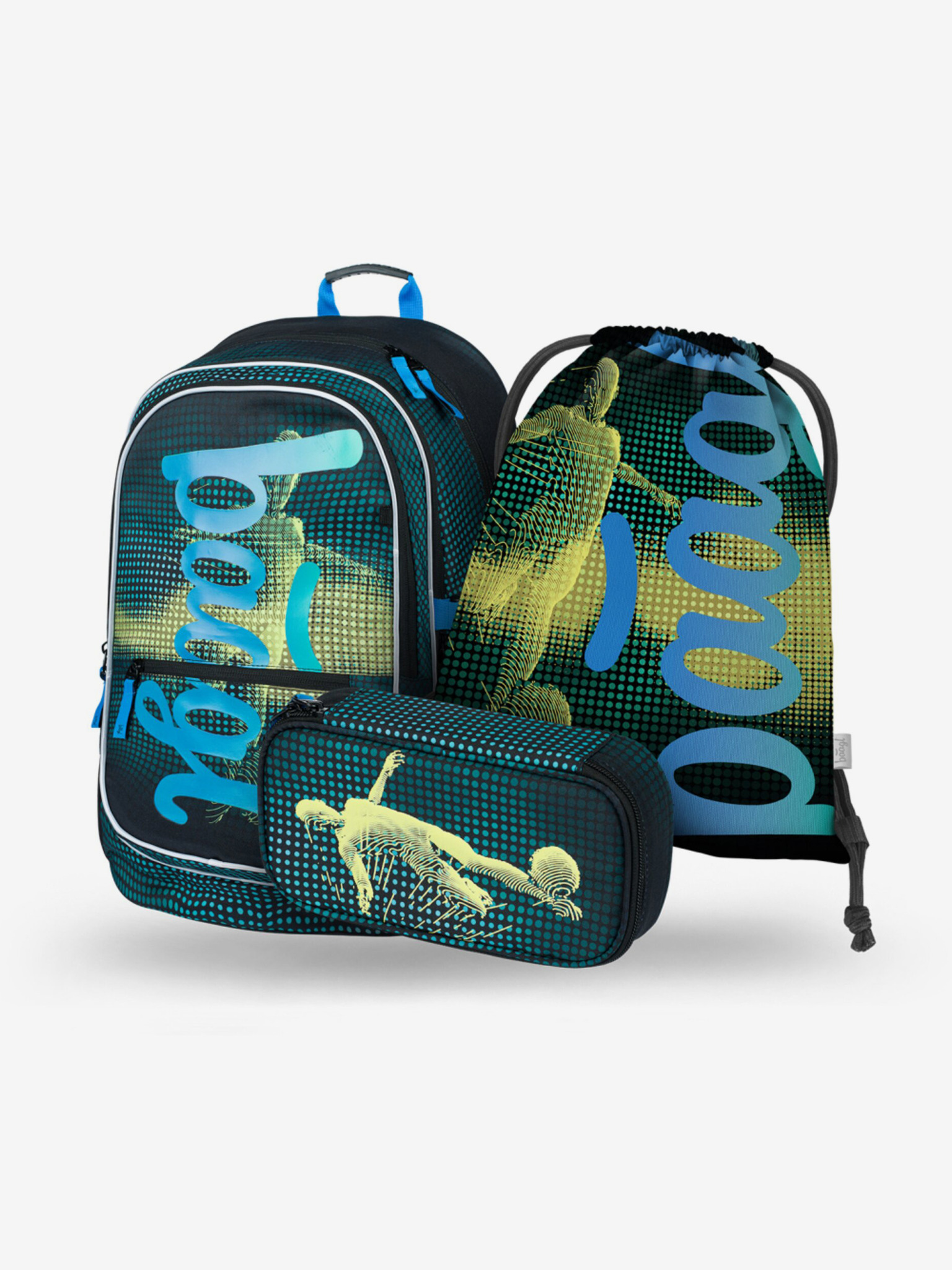 Zeleni šolski komplet Core - nahrbtnik, peresnica, torba Baagl Nogometaš