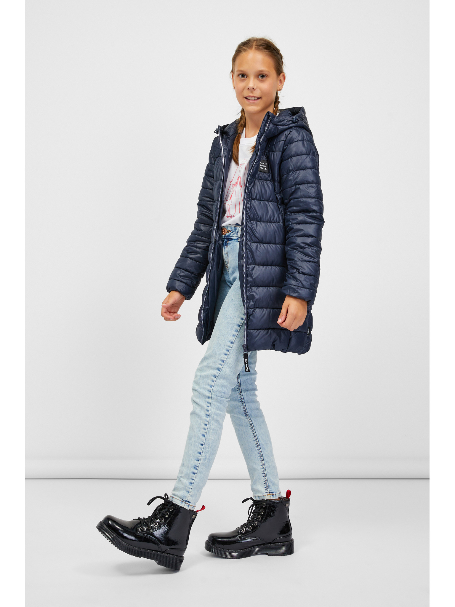 Temno modra dekliška prešita zimska jakna s snemljivo kapuco Tom Tailor
