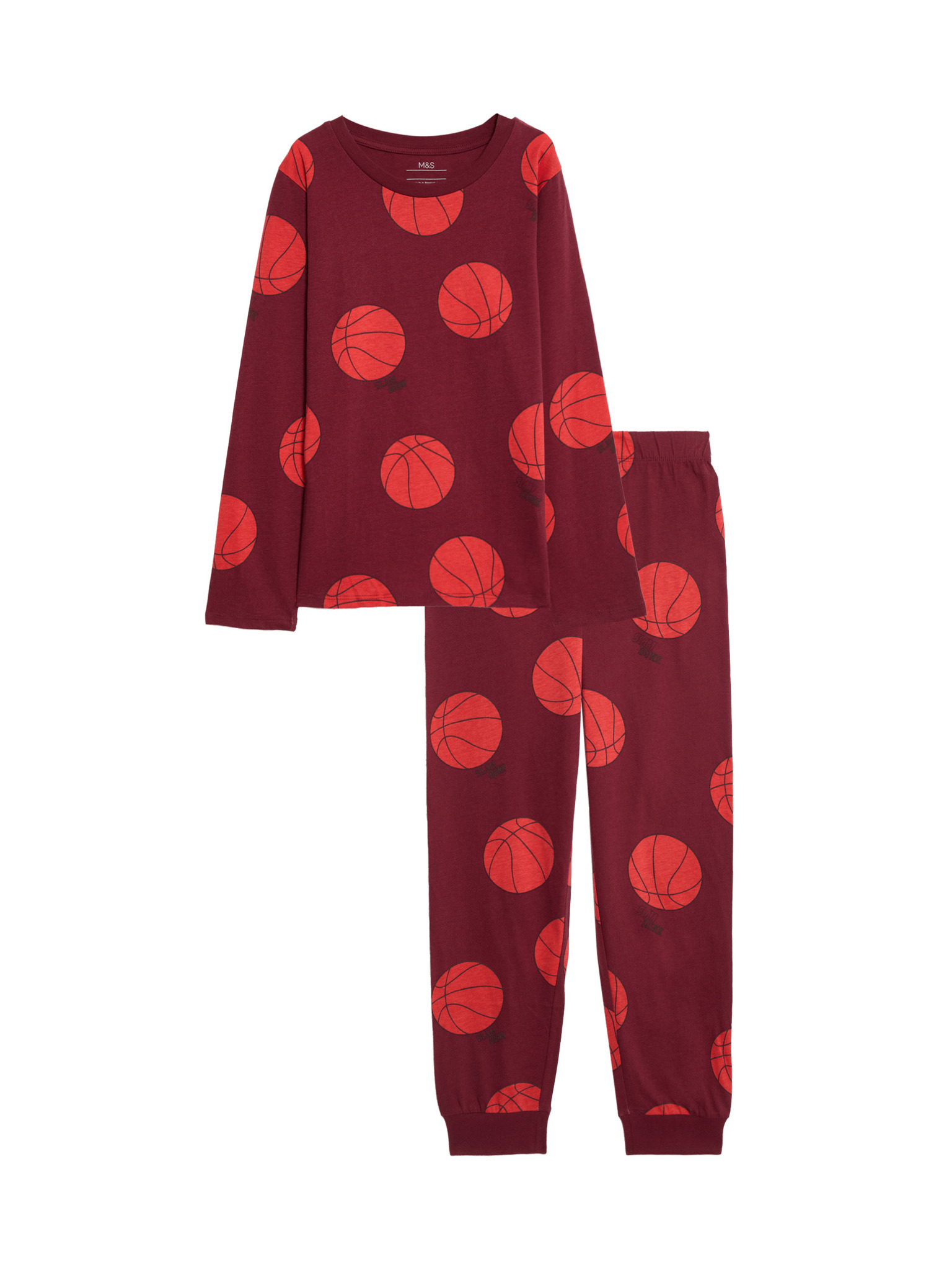 Pižama iz čiste bombaževine zotiskom pentlje (1–16 let) Marks & Spencer rdeča
