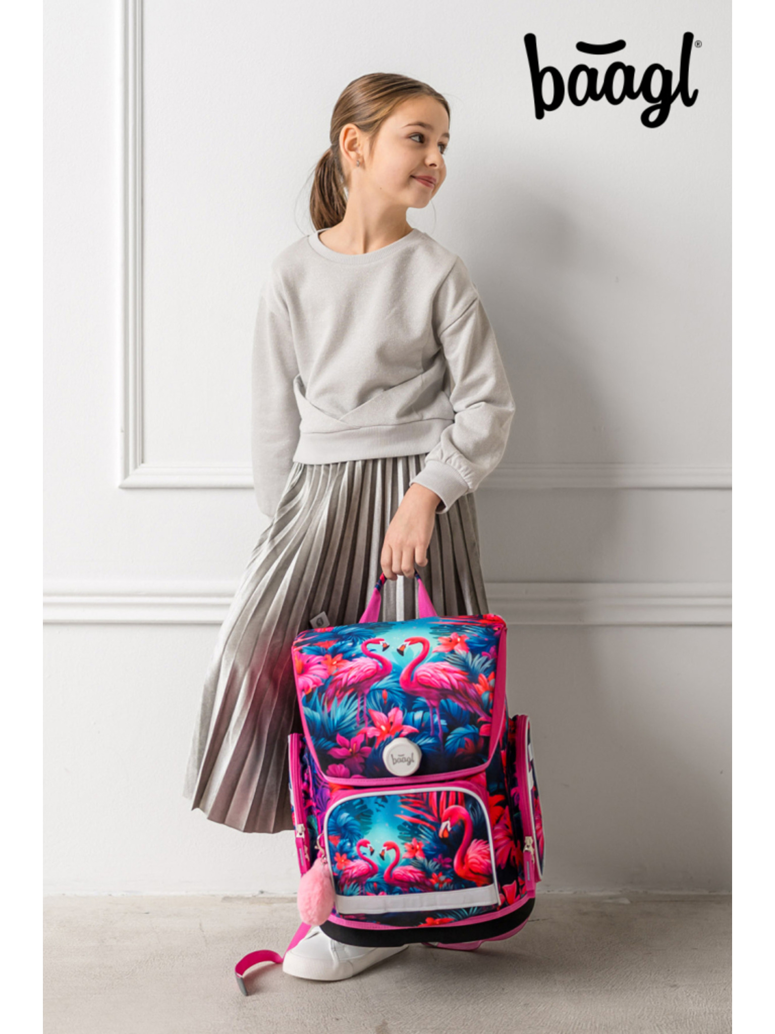 BAAGL SET 5 Ergo Plameňáci: aktovka, penal, sáčok, zástěra, peňaženka