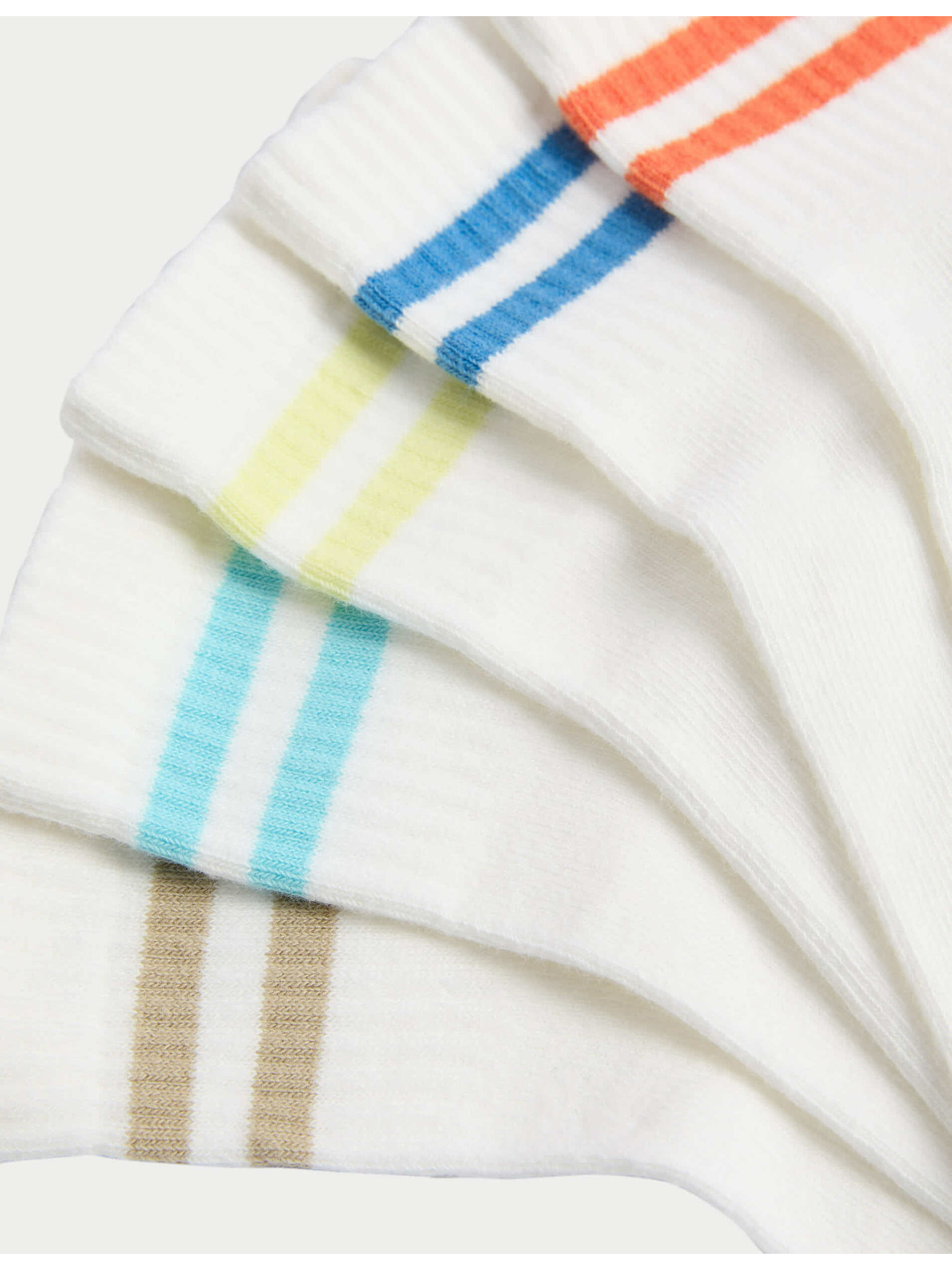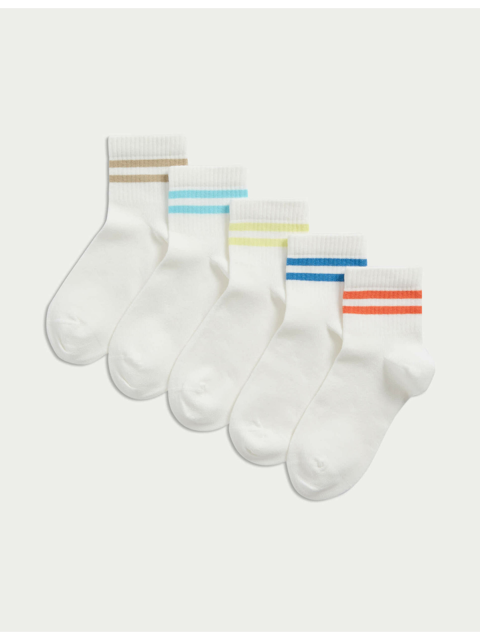 Prugaste športne nogavice z visokim deležem bombaža, komplet 5 parov (6 majhne – 7 velike) Marks & Spencer bela