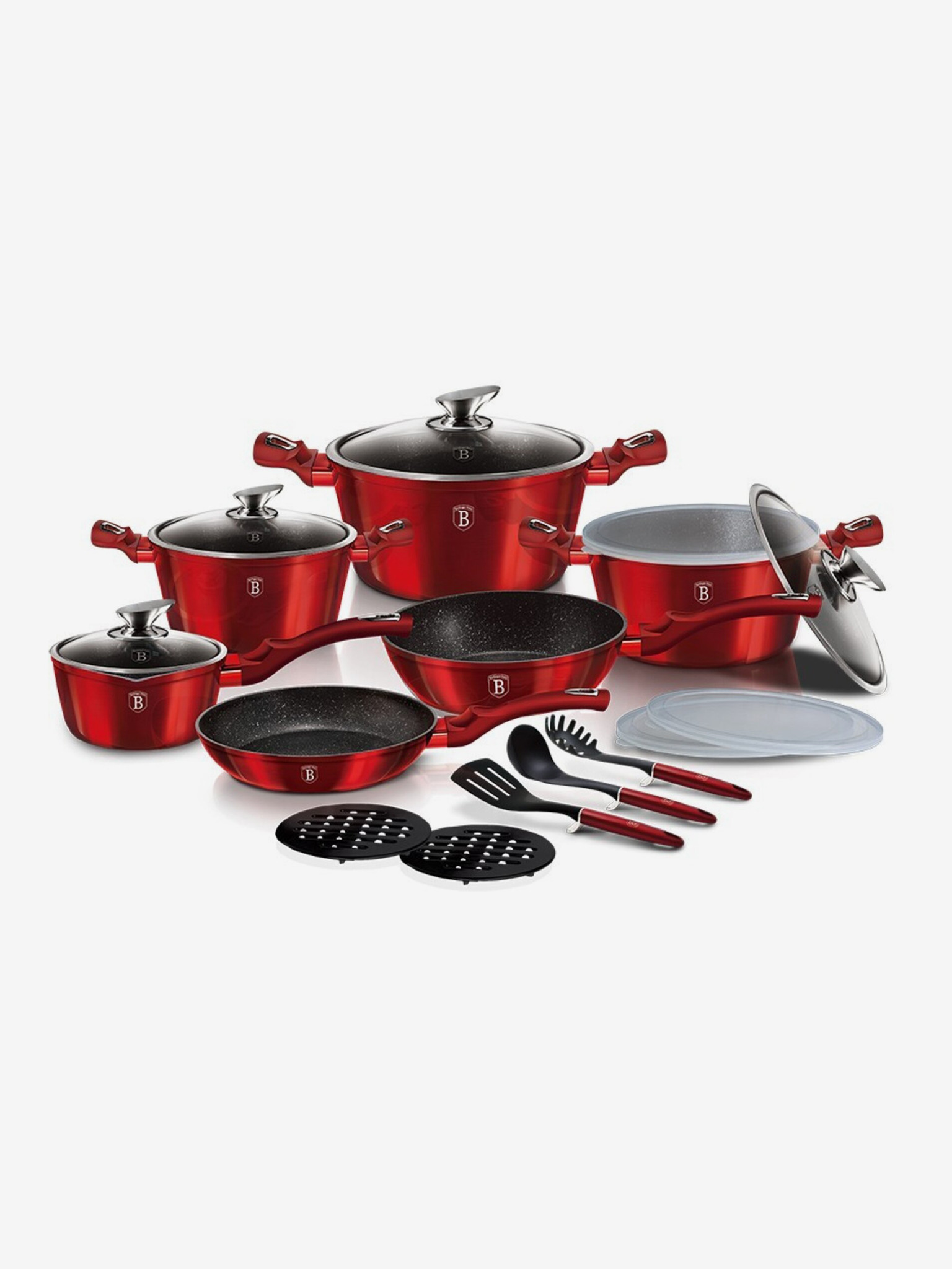 Ponev z odstranljivo ročajem komplet 5 kosov Burgundy Metallic Line žar BERLINGERHAUS