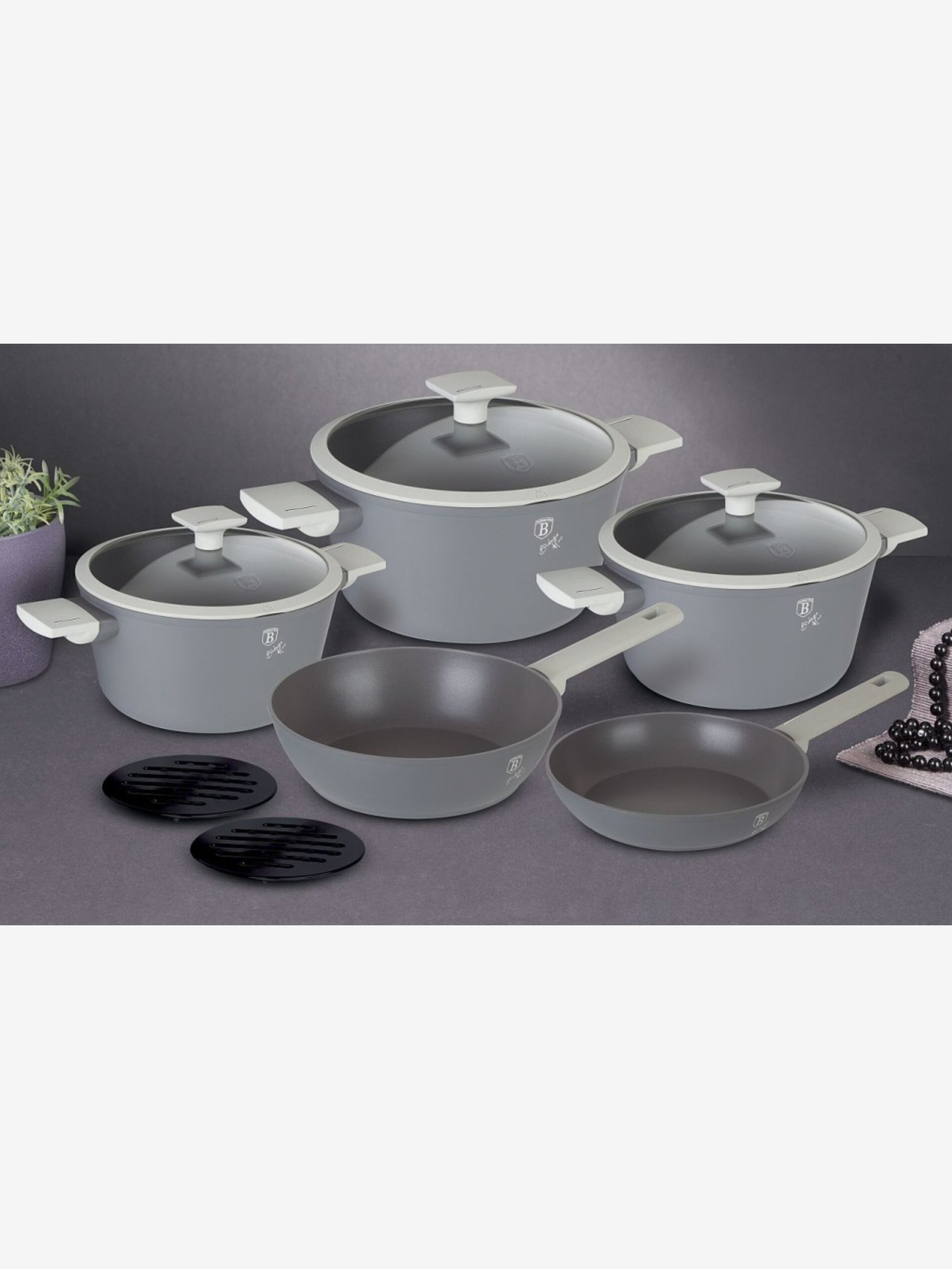 Komplet posode z marmornim površjem 10 kosov Aquamarine Metallic Line BERLINGERHAUS