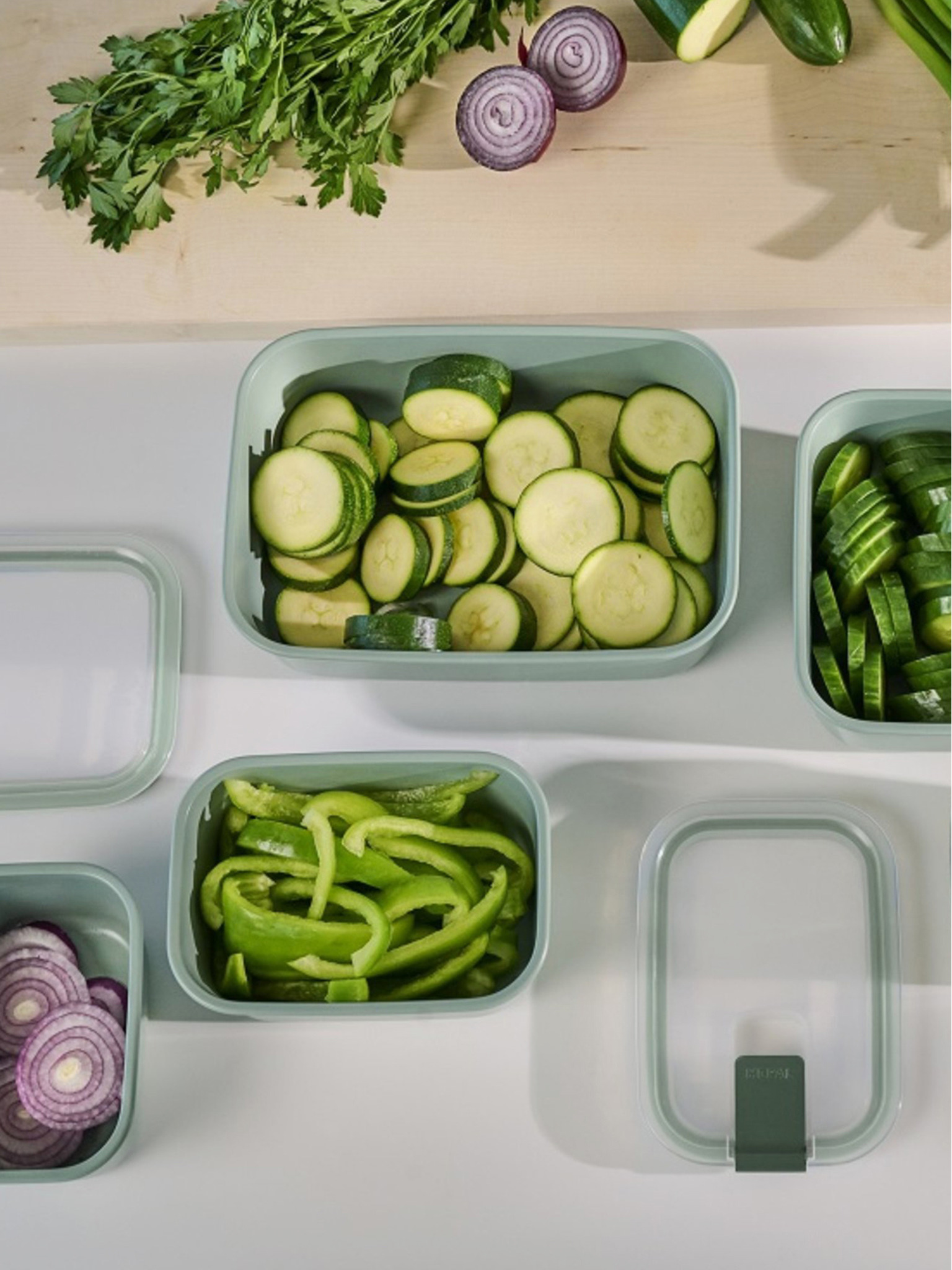 Svetlo zelena Mepal Cirqula Pravokotna posoda 750 + 1500 + 3000 ml