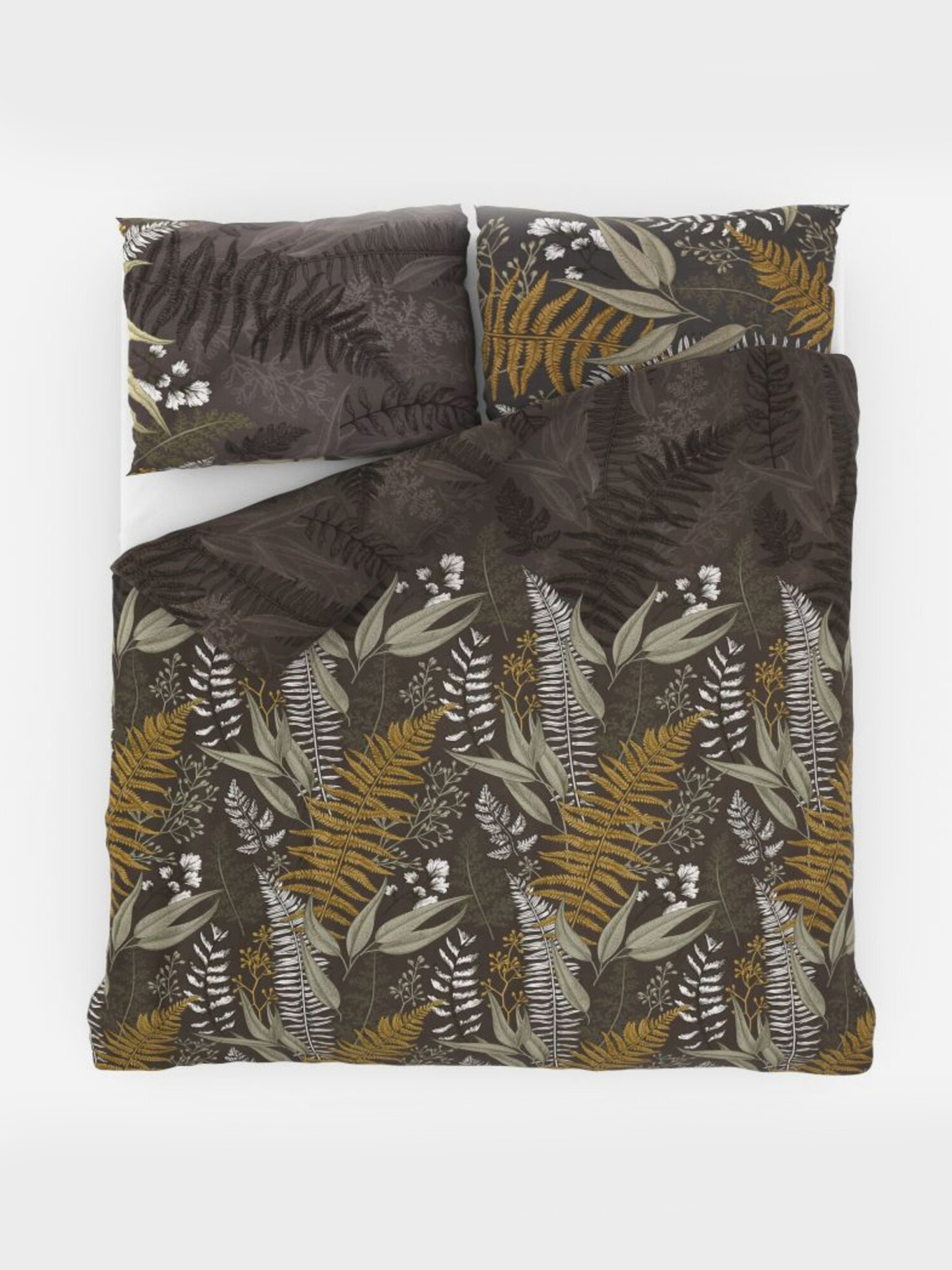 Saténové francúzske posteľné obliečky Luxury Collection 1+2, 200x200, 70x90cm Papradie hnedé Kvalitex
