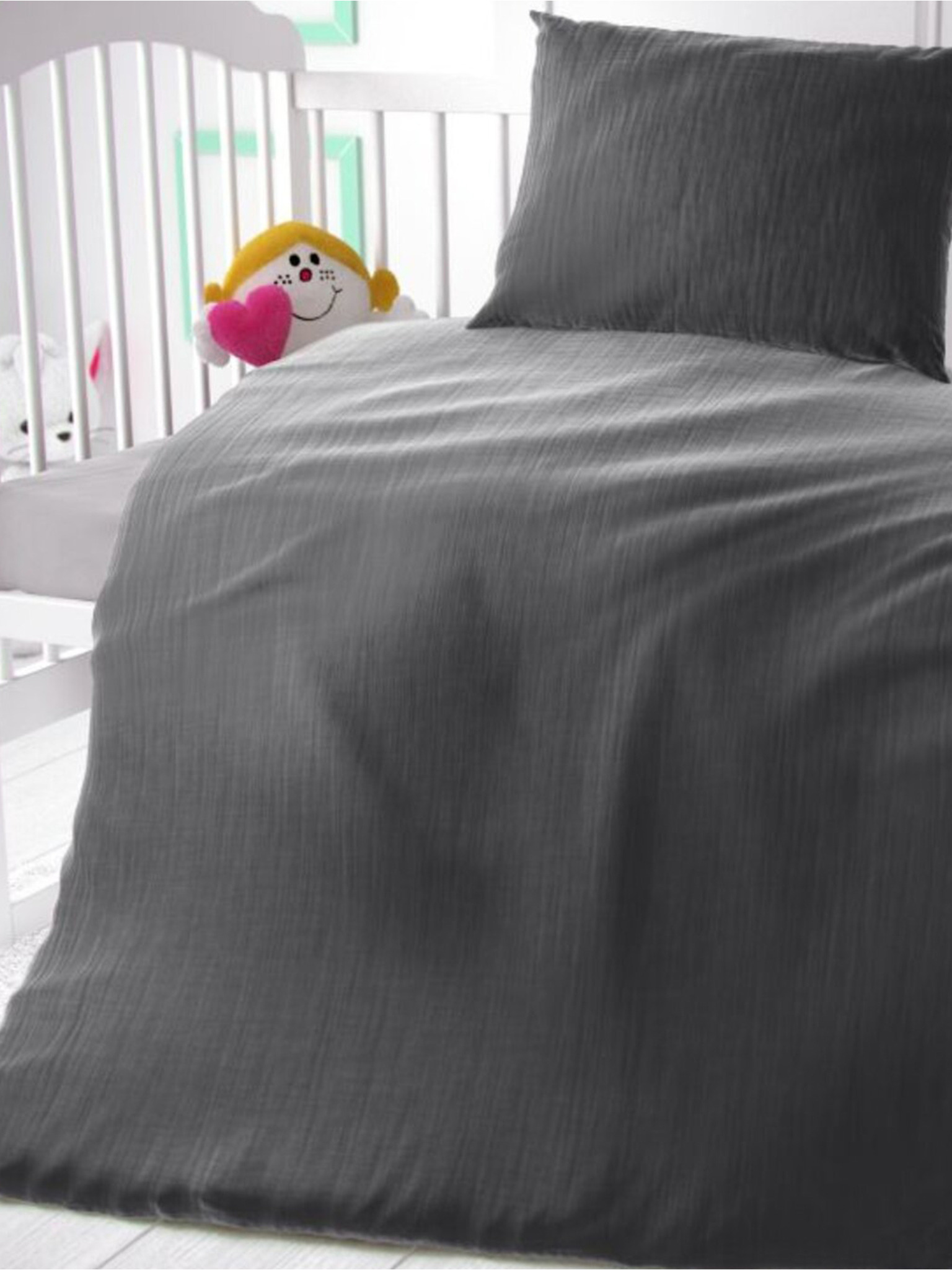 Muslinasto posteljno perilo 140x200, 70x90cm svetlo sivo Kvalitex
