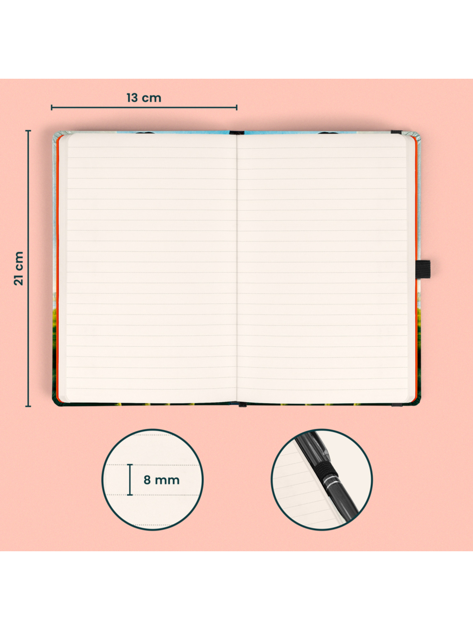 • Vezava: trda vezava z elastičnim zapiranjem in zanko za svinčnik