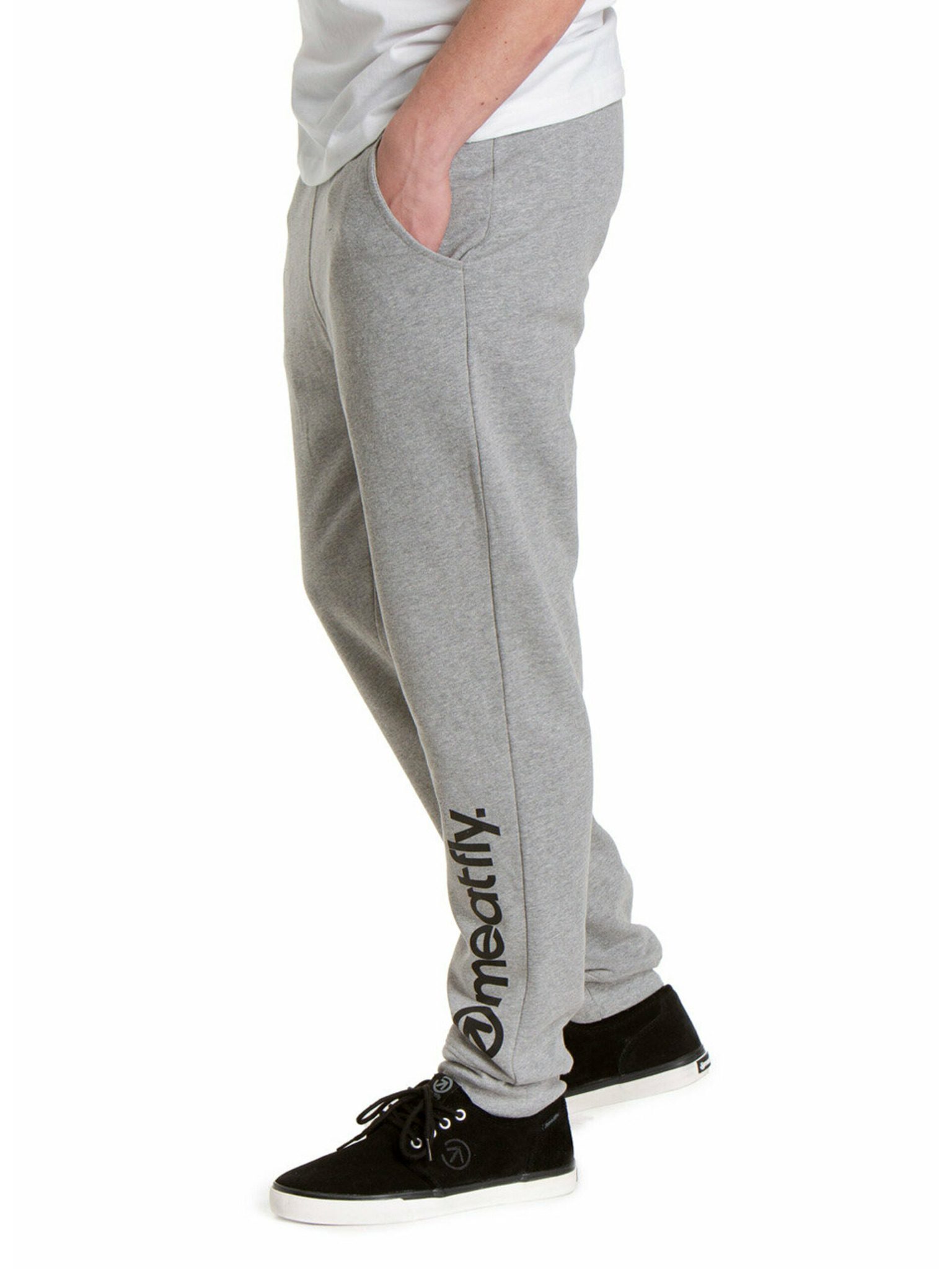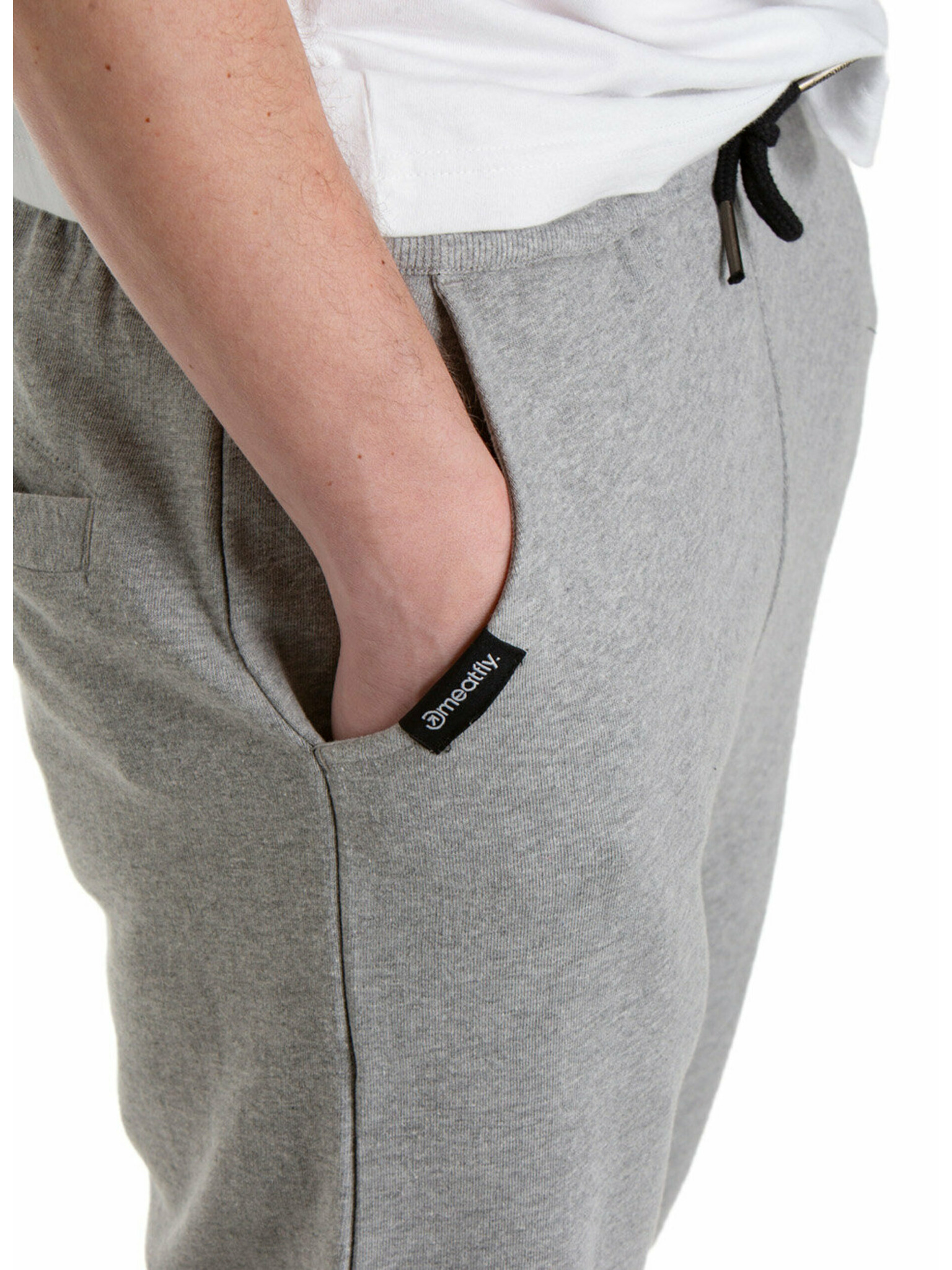 Moške trenirka hlače z obrobjem in rebrastimi hlačnicami - siva melanž