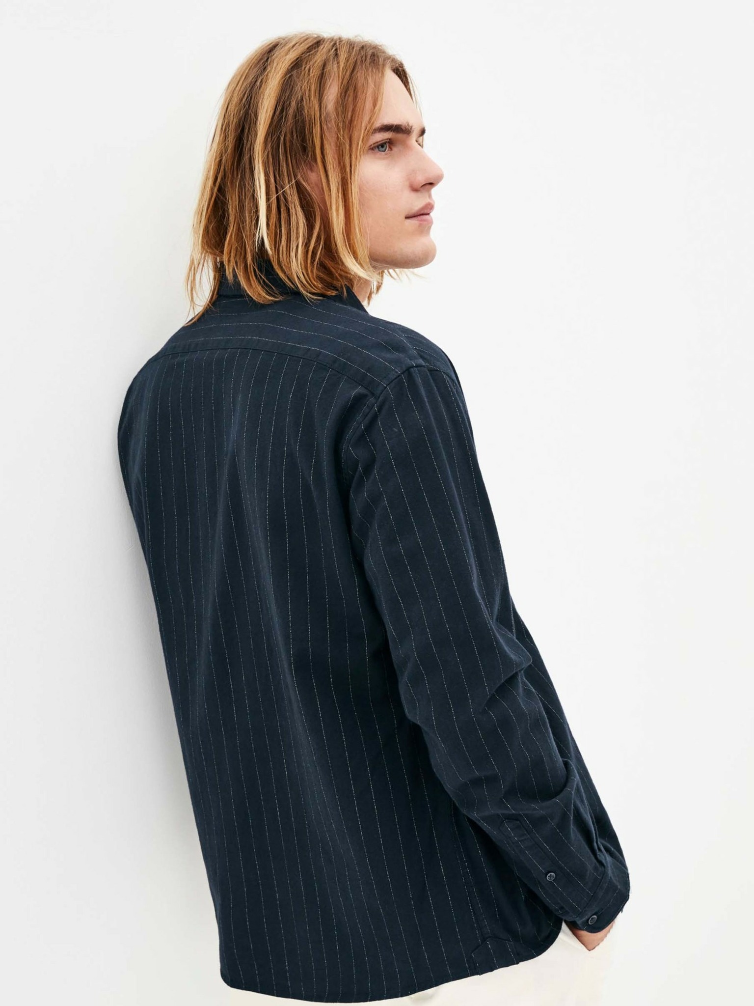 Moška srajca iz finega džinsa z vzorcem in žepom - svetlo modra Ombre Clothing