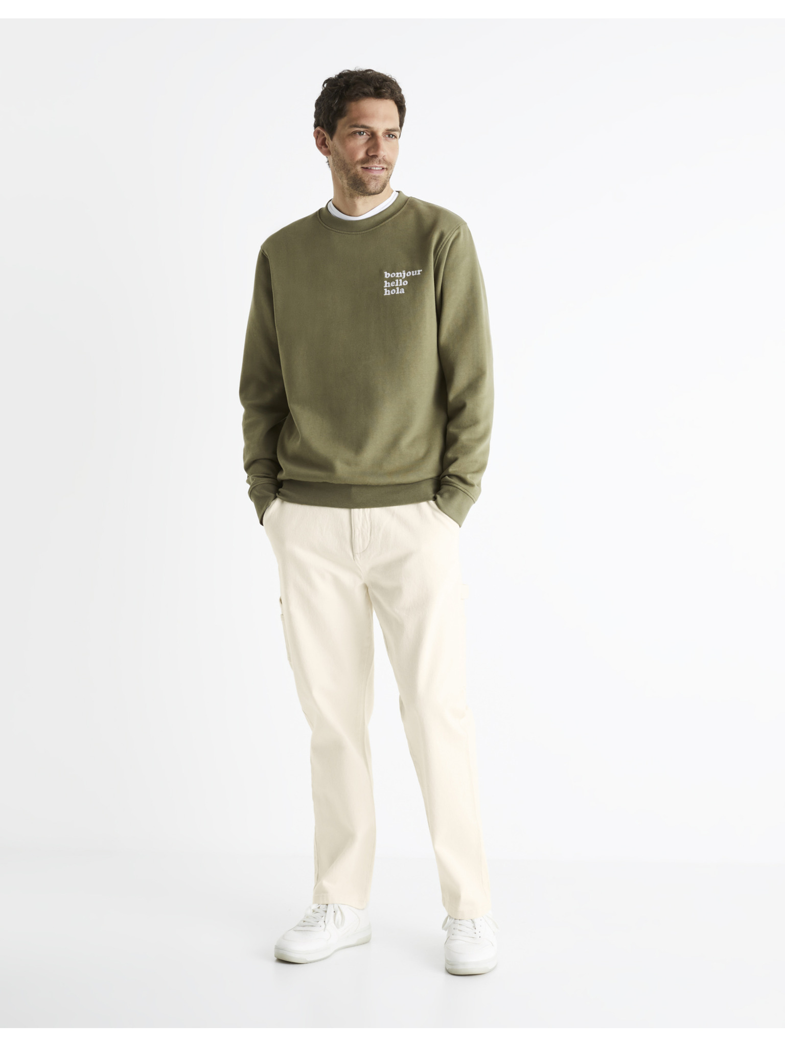 Moška jopica z visokim ovratnikom in črtami - olivna