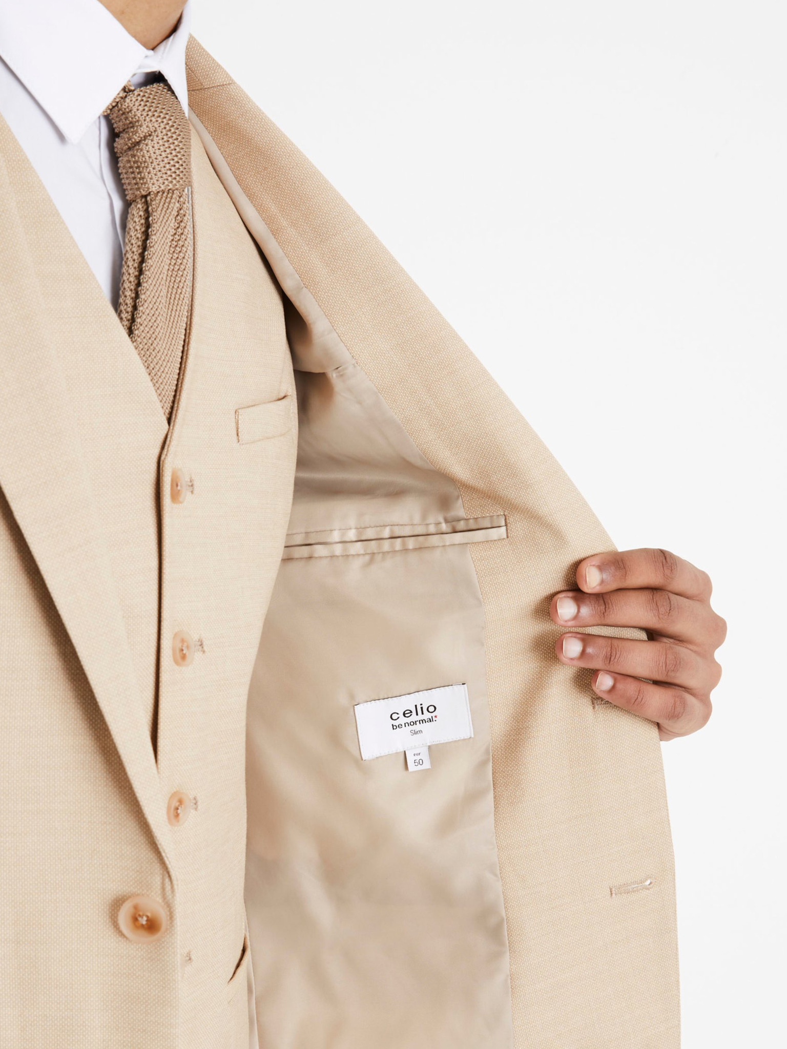 Moški bež blazer SLIM iz rahlo strukturiranega pletiva