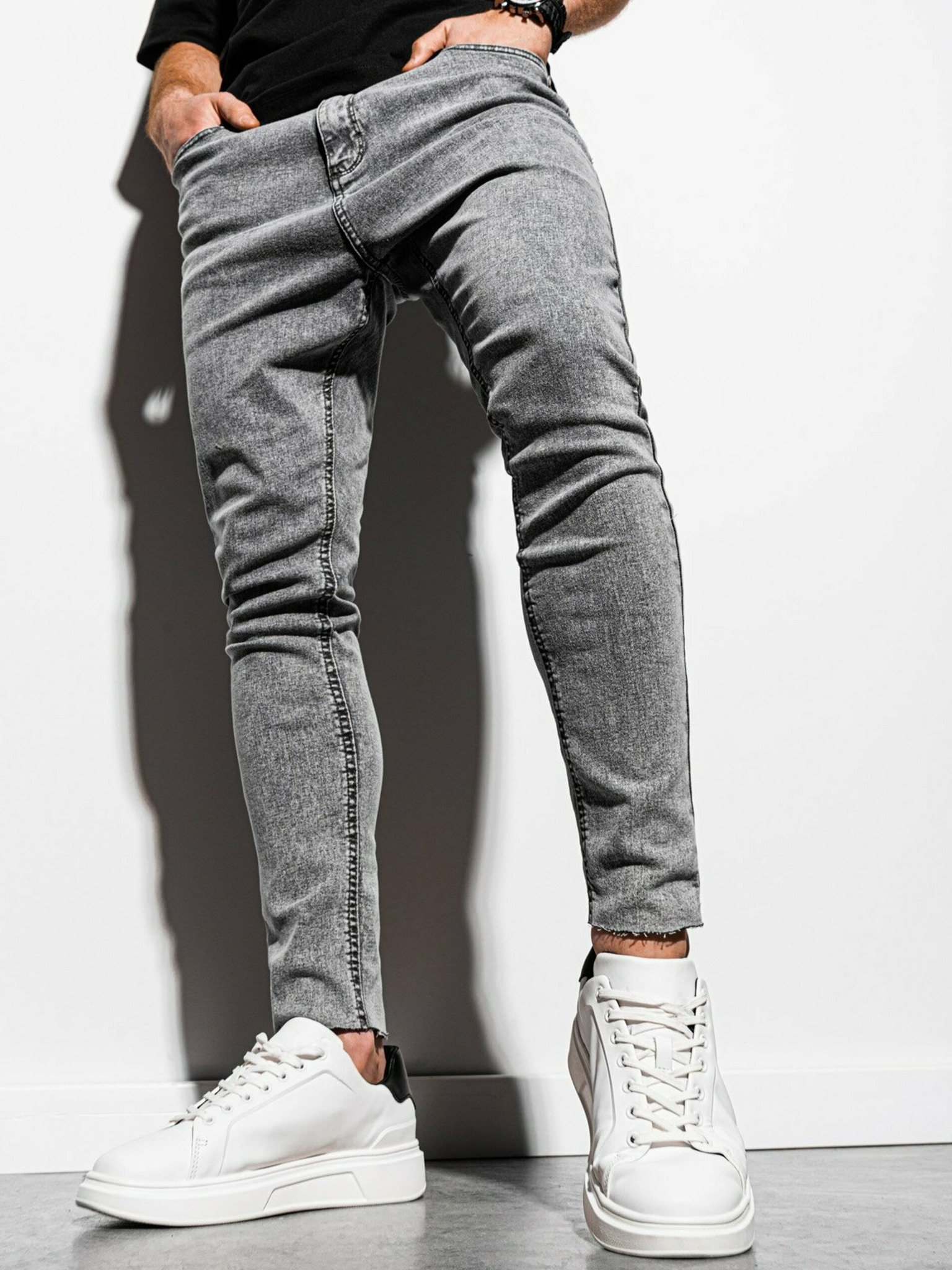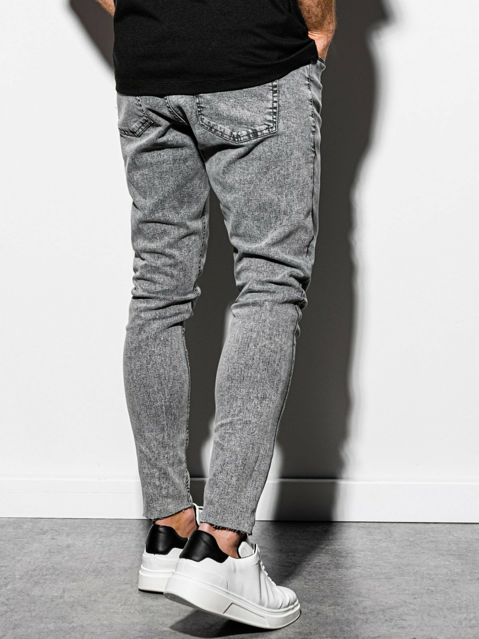 Sive moške slim fit kavbojke Ombre Clothing
