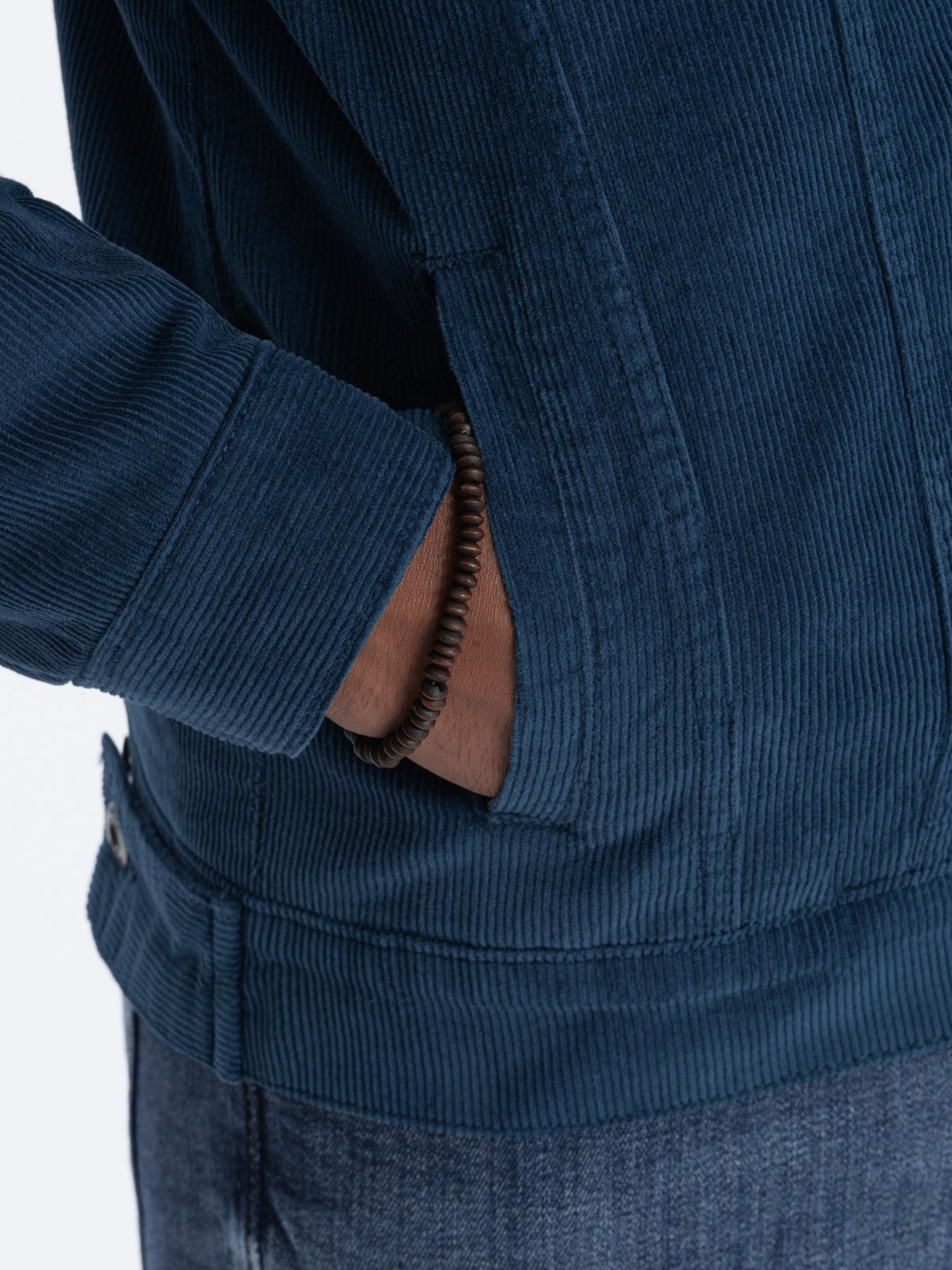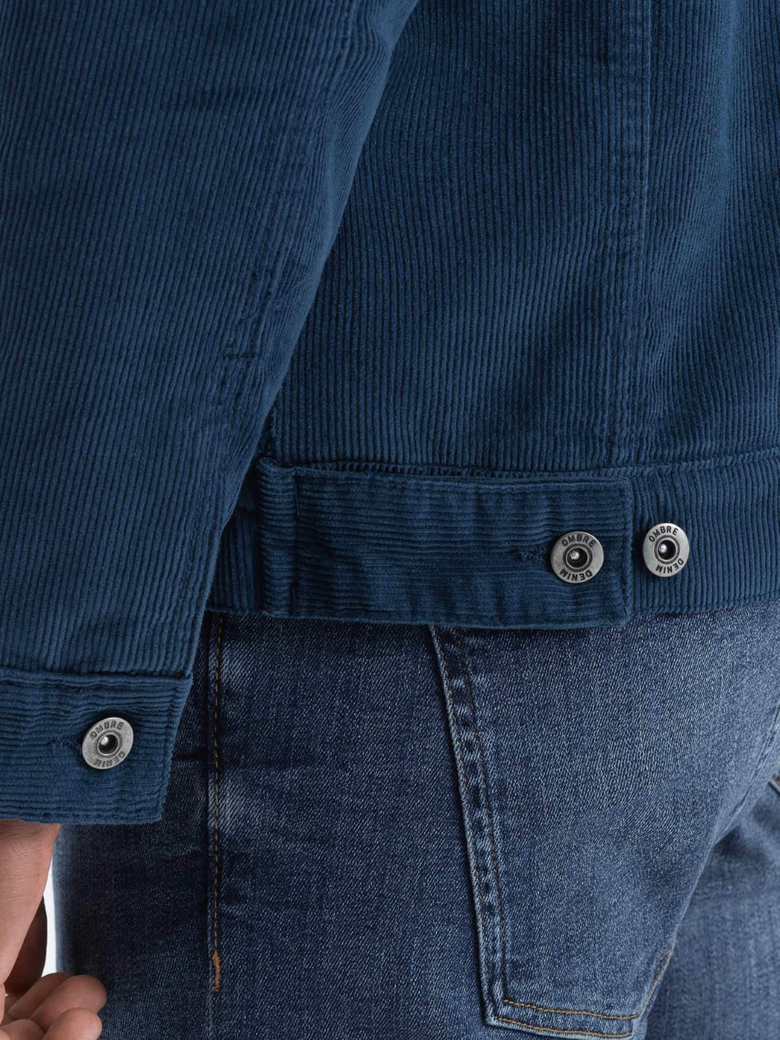 Moška sodobna prešitena jakna iz kombiniranih materialov - temno modra V2 OM-JAHP-0303 Ombre Clothing