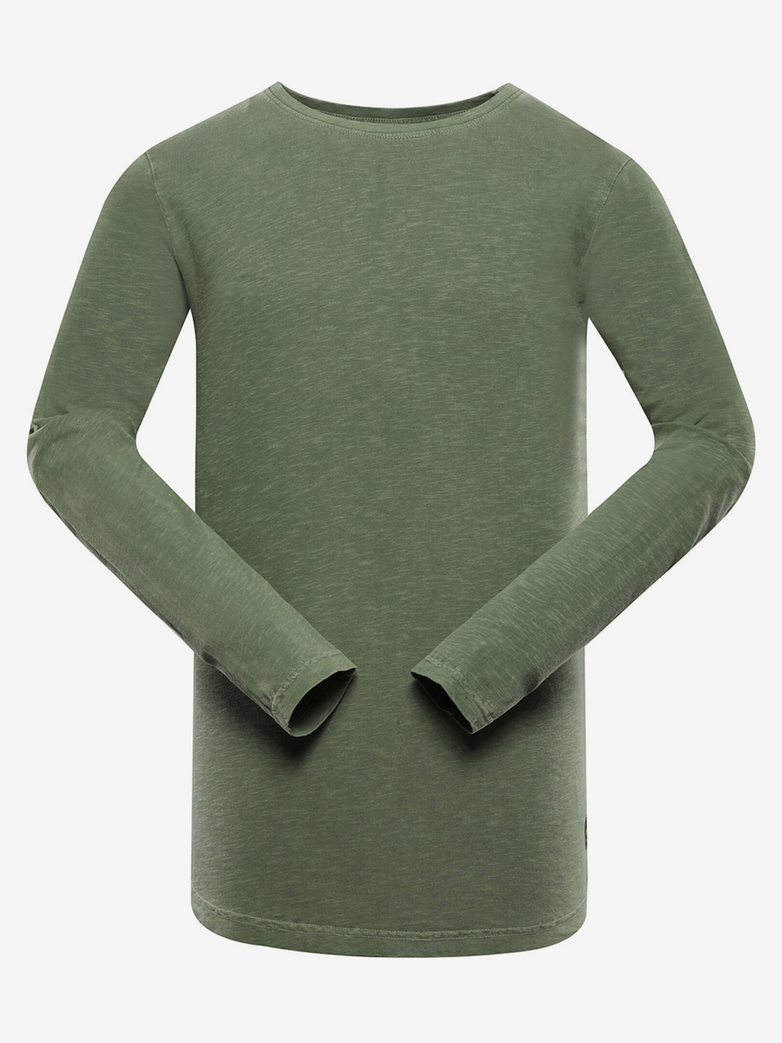 Moška bombažna majica LOOSE FIT z dolgimi rokavi in okroglim vratom - sivo-zelena V3 OM-LSBC-0129 Ombre Clothing