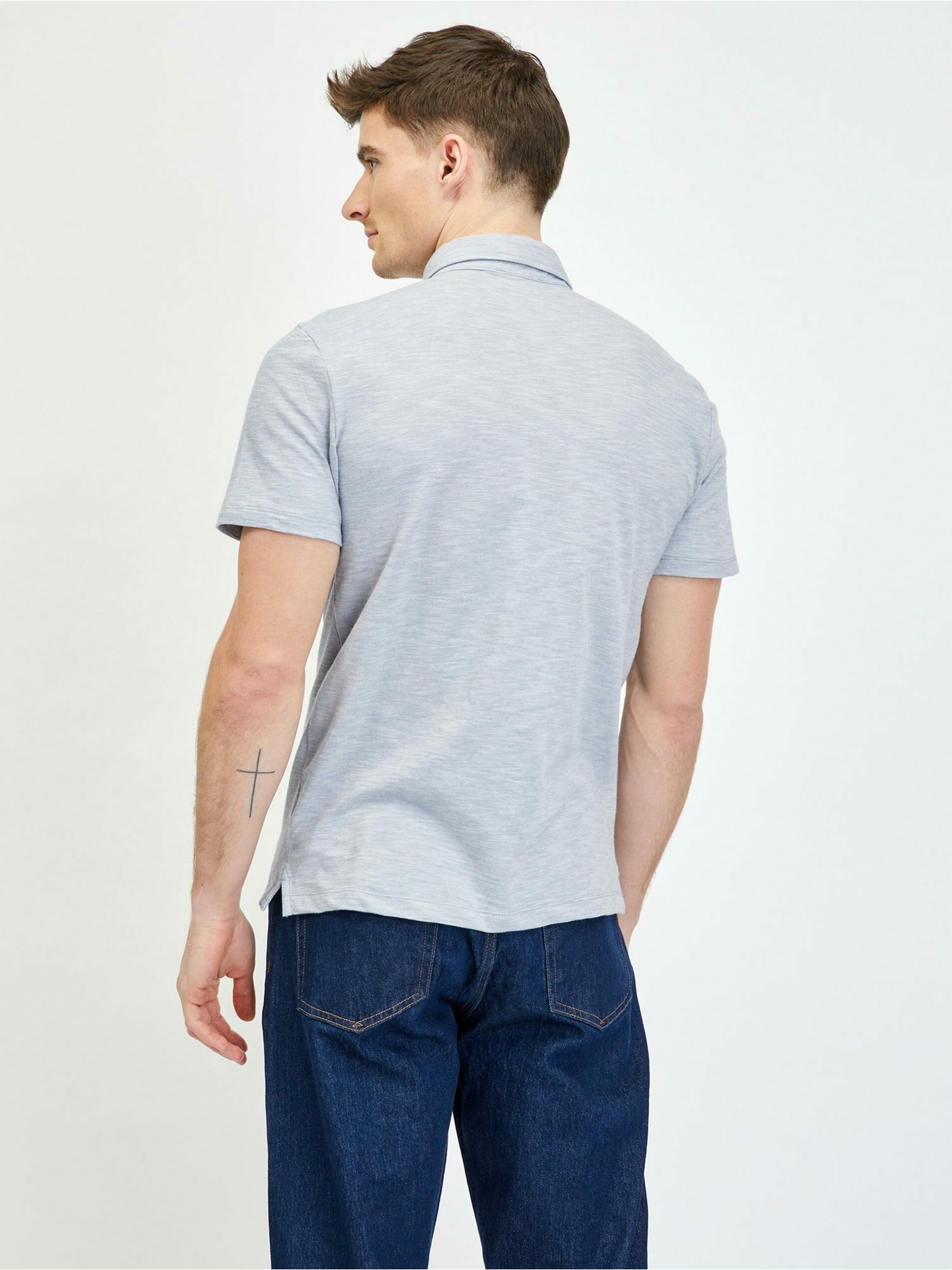 Moška polo majica brez gumbov z odprtim ovratnikom - svetlo siva