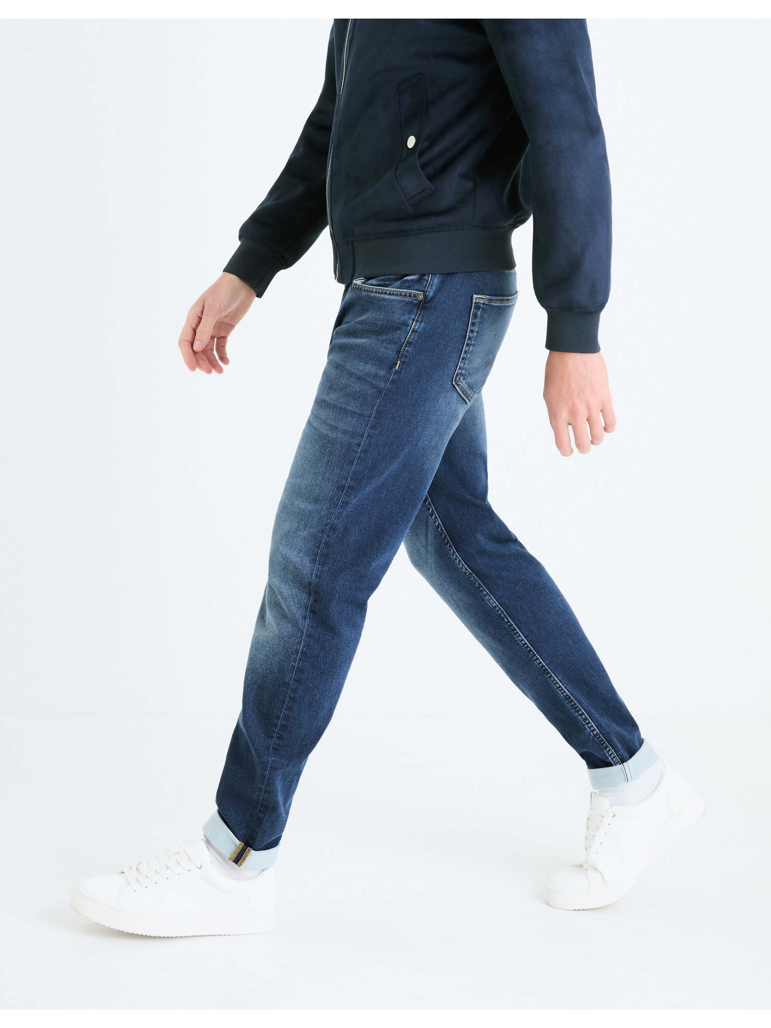 Temno modre moške kavbojke tankega kroja Celio Fotaper