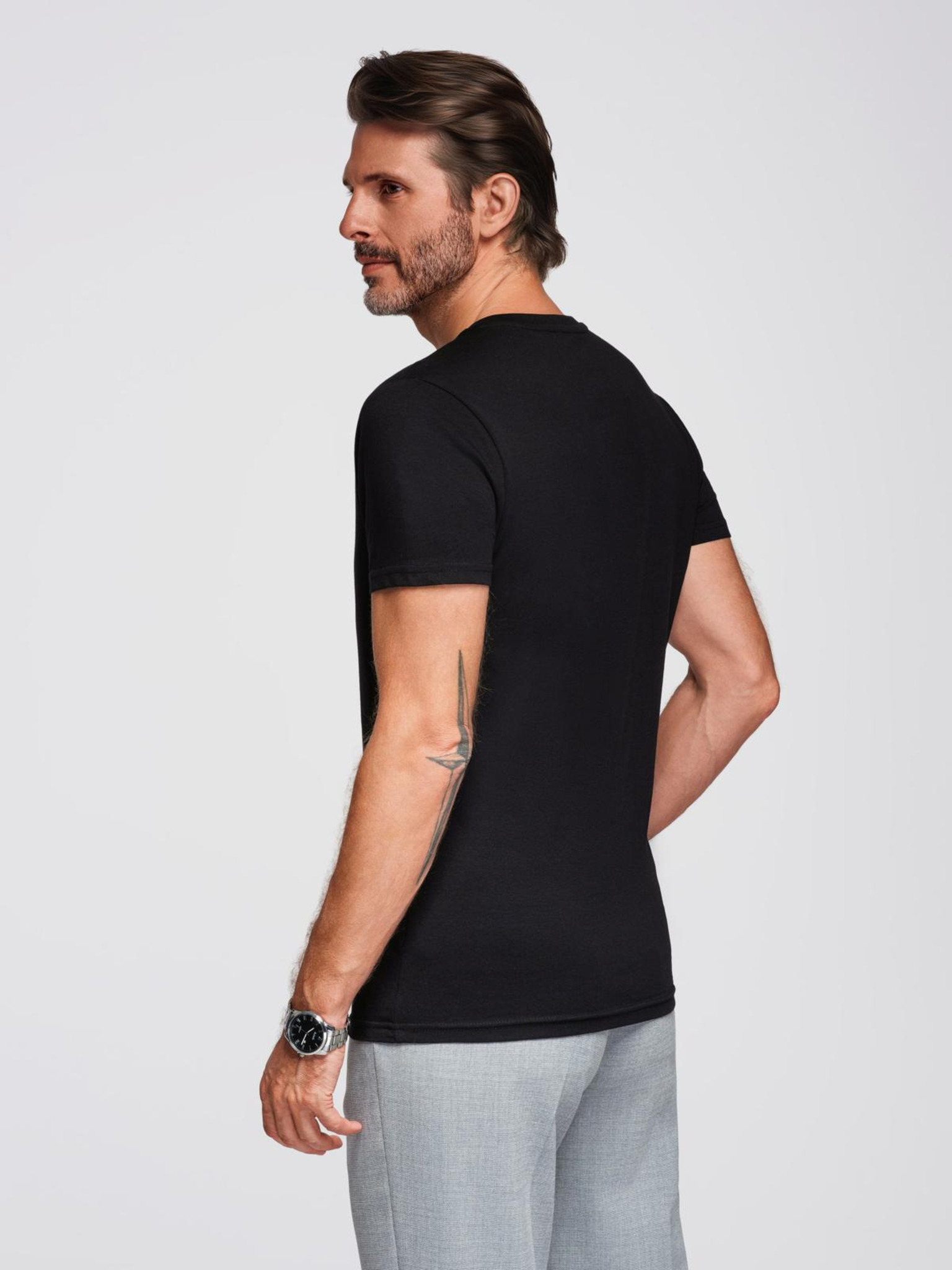 Črna moška majica z v-izrezom Ombre Clothing