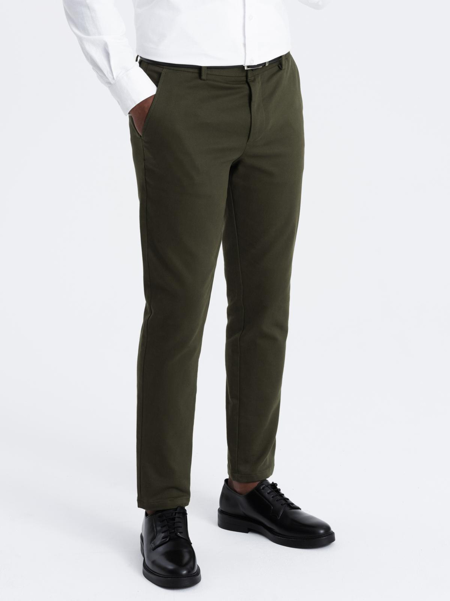 Moške chino hlače REGULAR FIT z rahlo strukturo - temno zelene