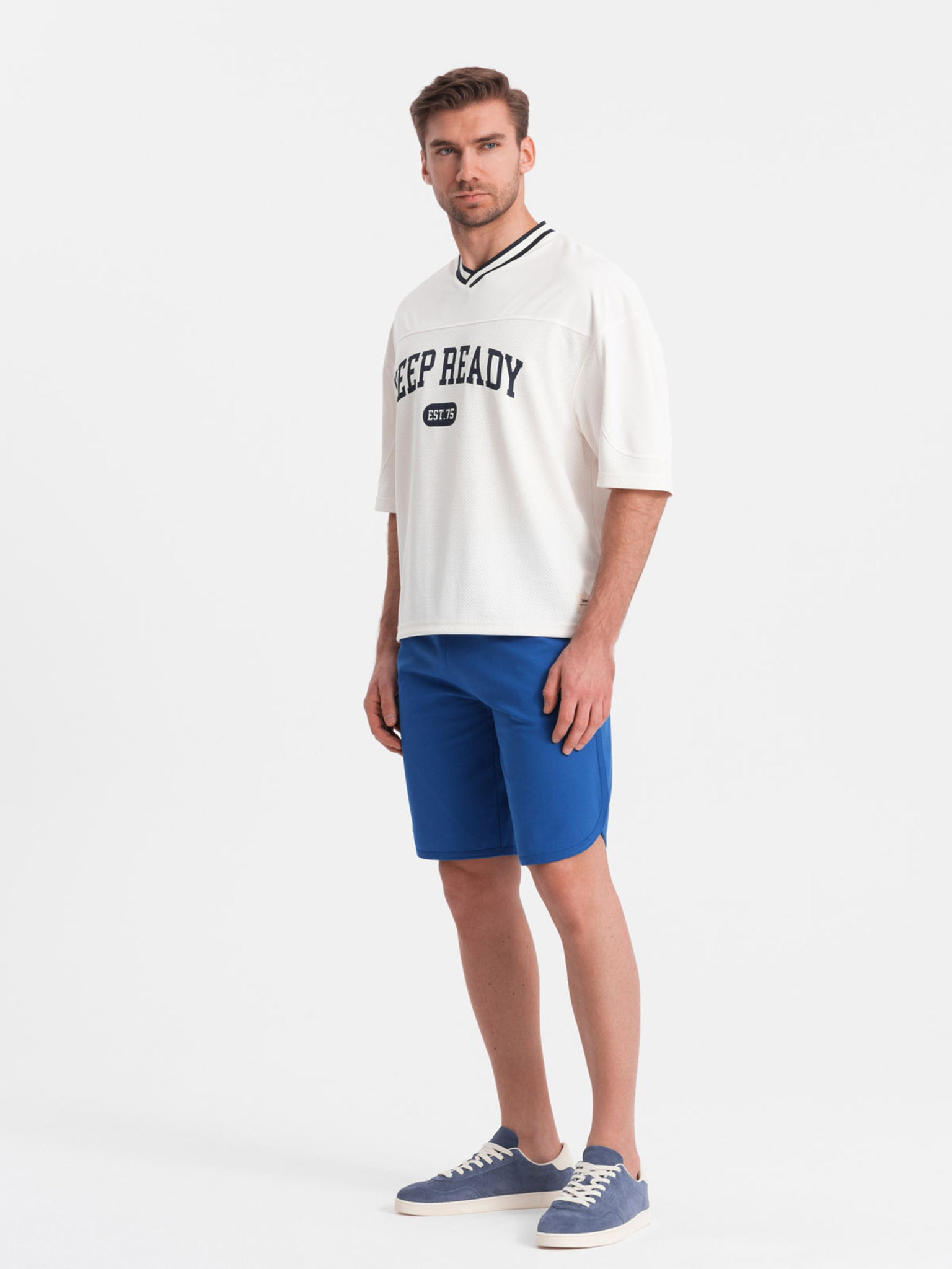 Moške pletene kratke hlače s prilagodljivim pasom - temno modre V3 OM-SRCS-0202 Ombre Clothing