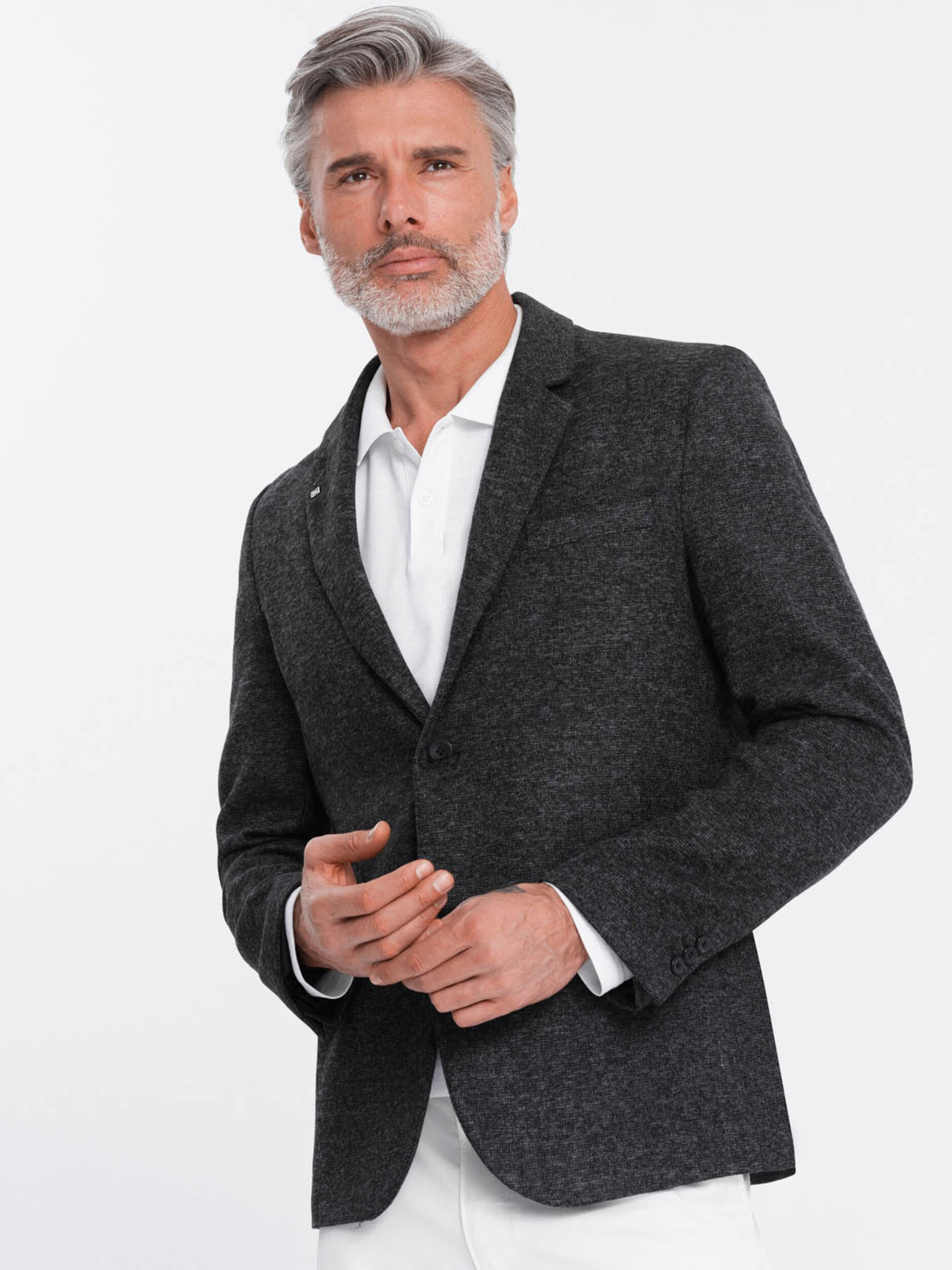 Moški sivi blazer SLIM iz rahlo strukturiranega pletiva