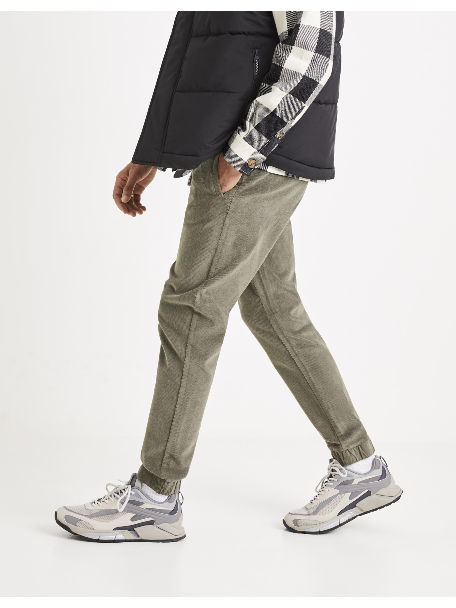 Moške trenirka hlače z obrobjem in rebrastimi hlačnicami - olivne