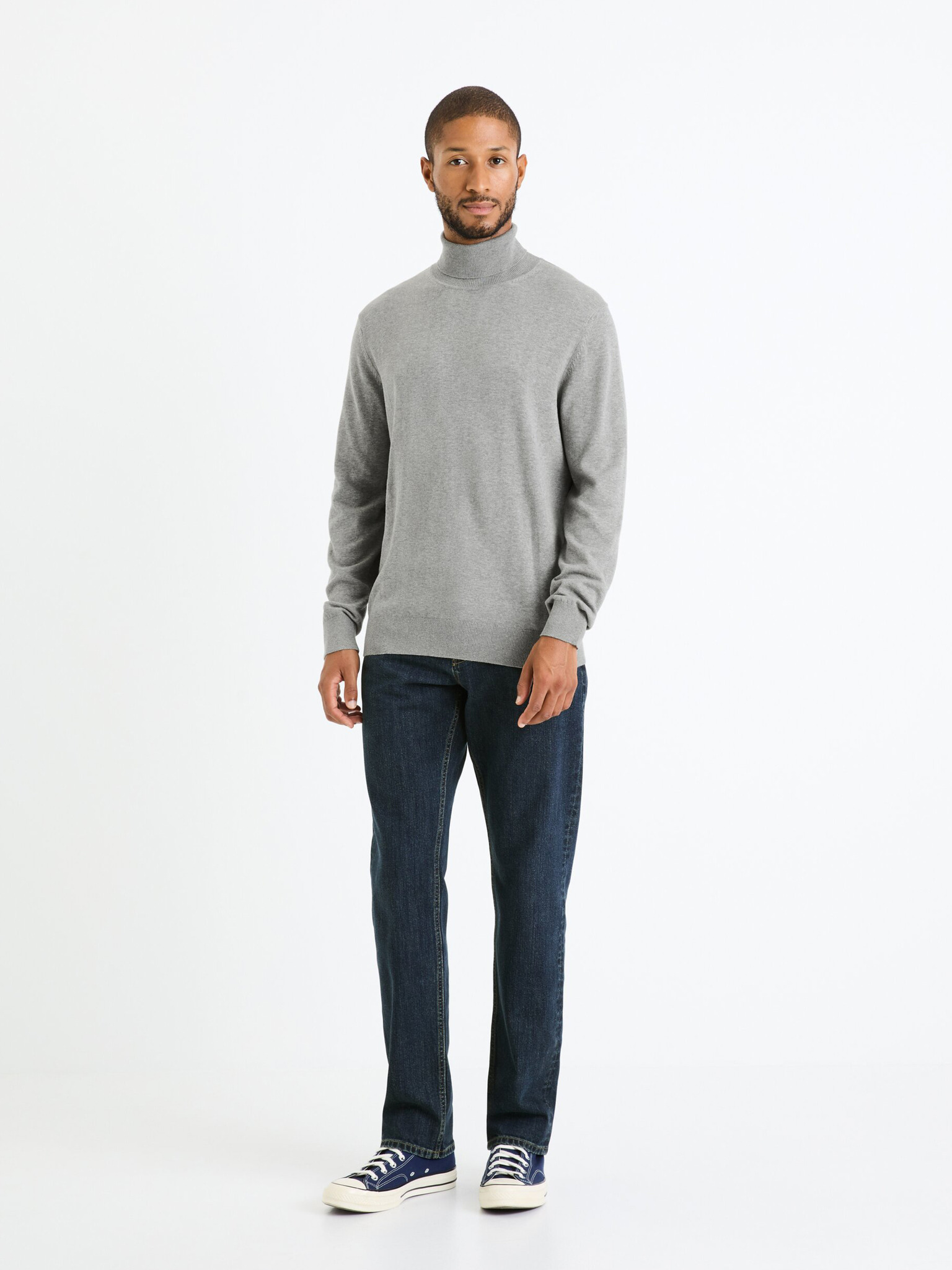 Temno siv moški osnovni pulover z rolojem Celio Menos