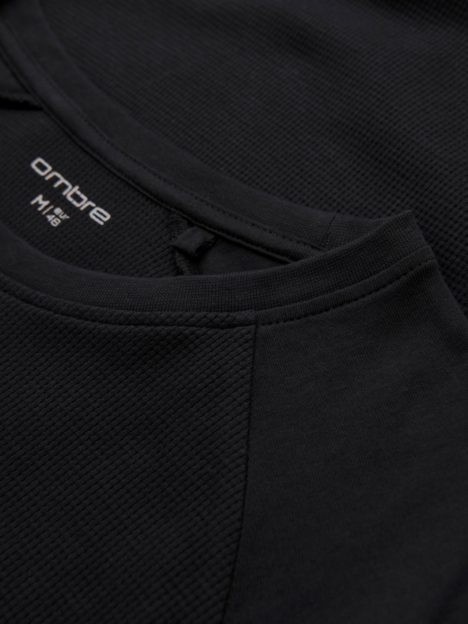 Moška bombažna majica z dolgimi rokavi, progastim U-izrezom in vezenim napisom Ombre Clothing