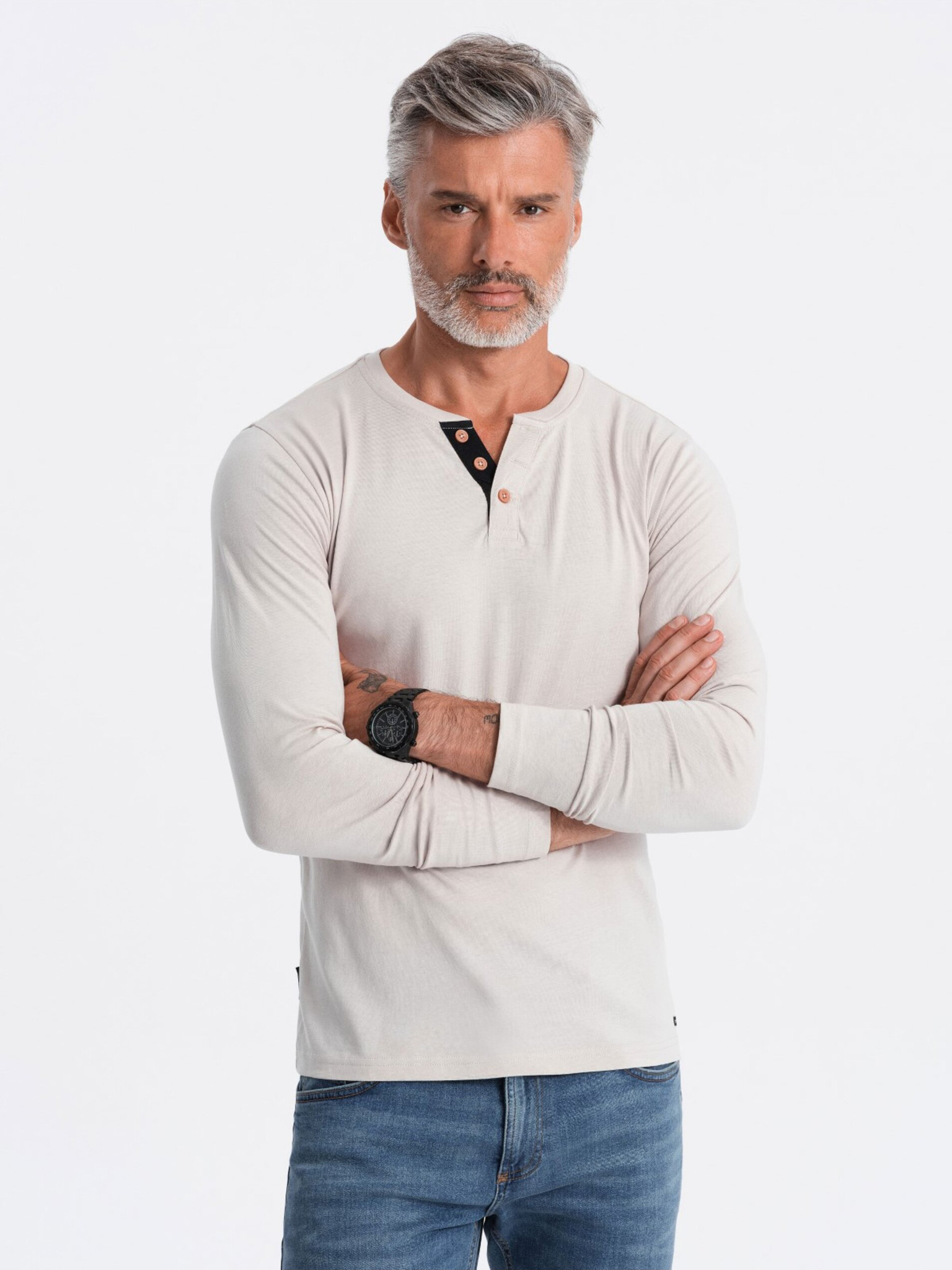 Svetlo siva moška majica z gumbom Ombre Clothing HENLEY