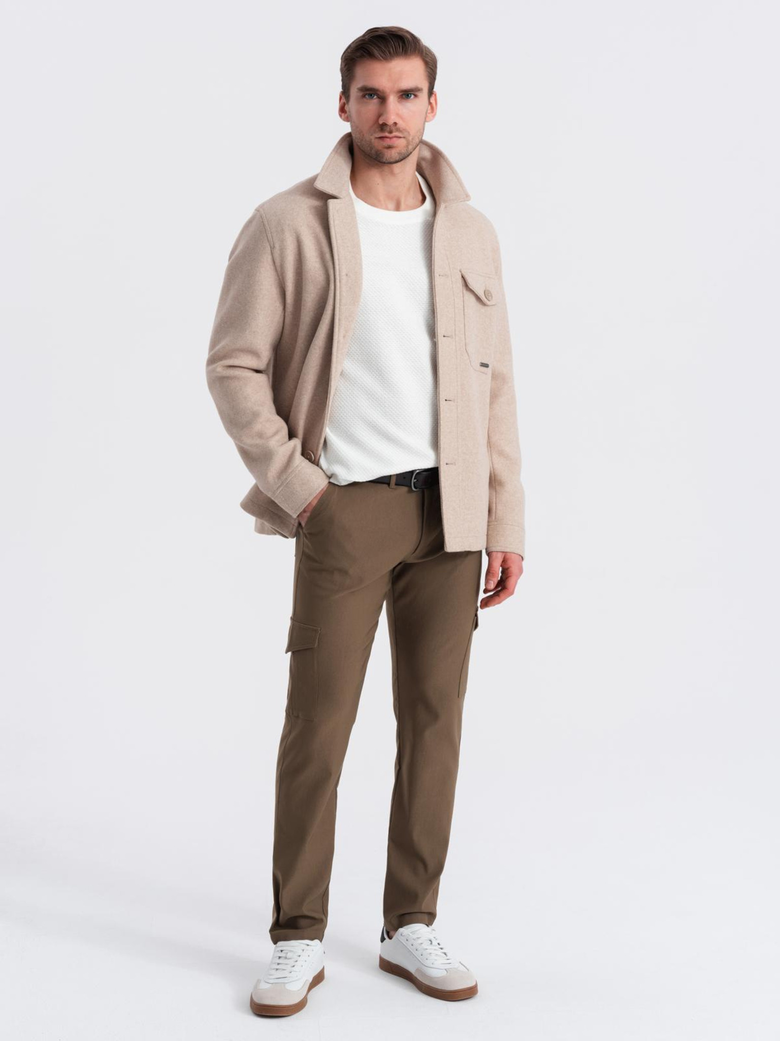 Moške hlače JOGGING s cargo žepi - olivne V18 P886 Ombre Clothing