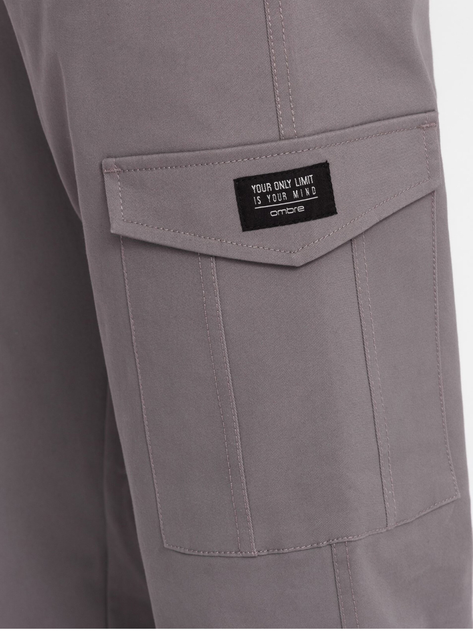 Moške hlače JOGGERY s tovornimi žepi na zadrgo sive barve Ombre Clothing