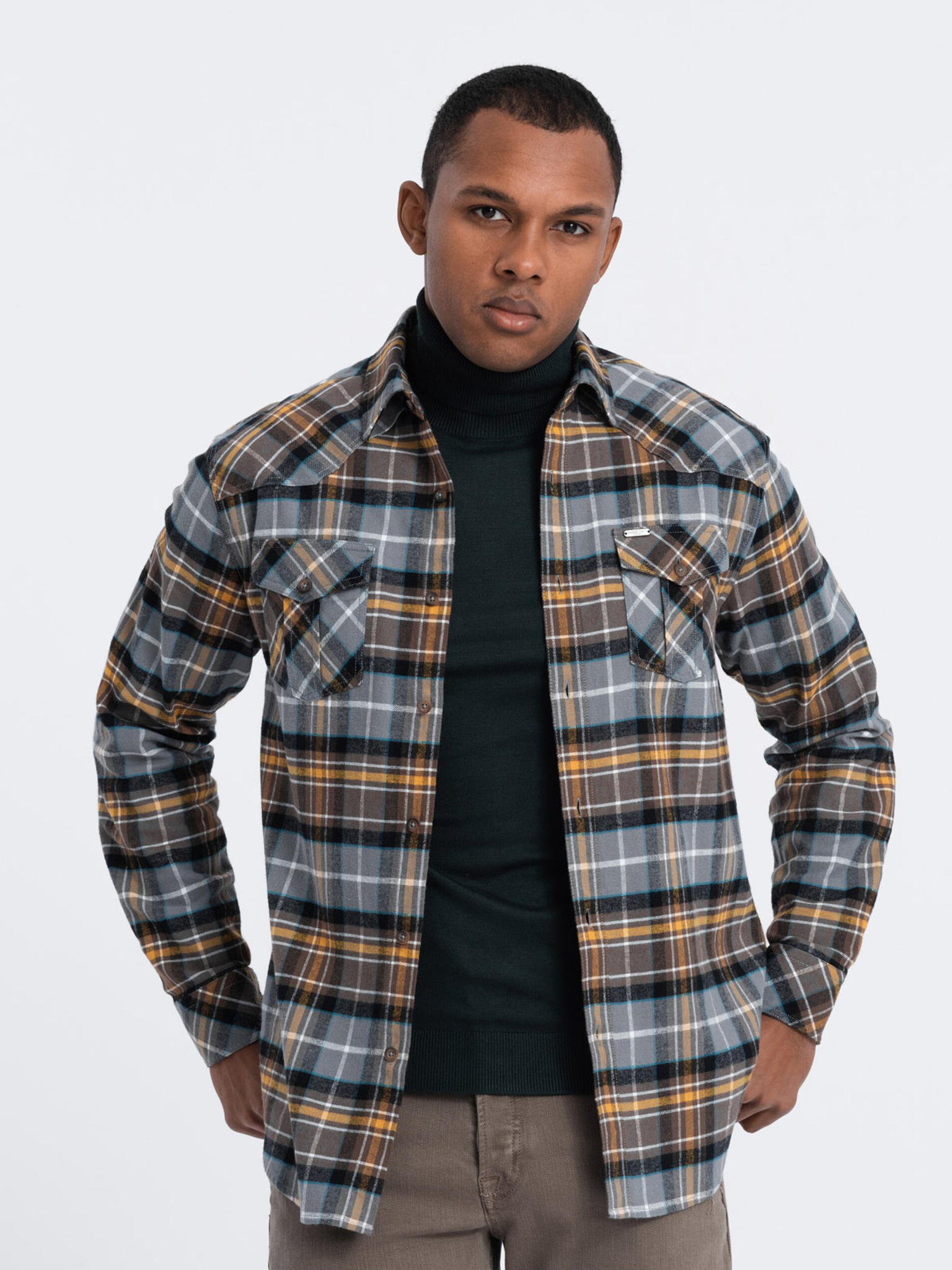 Oranžna in siva moška flanelna srajca Ombre Clothing