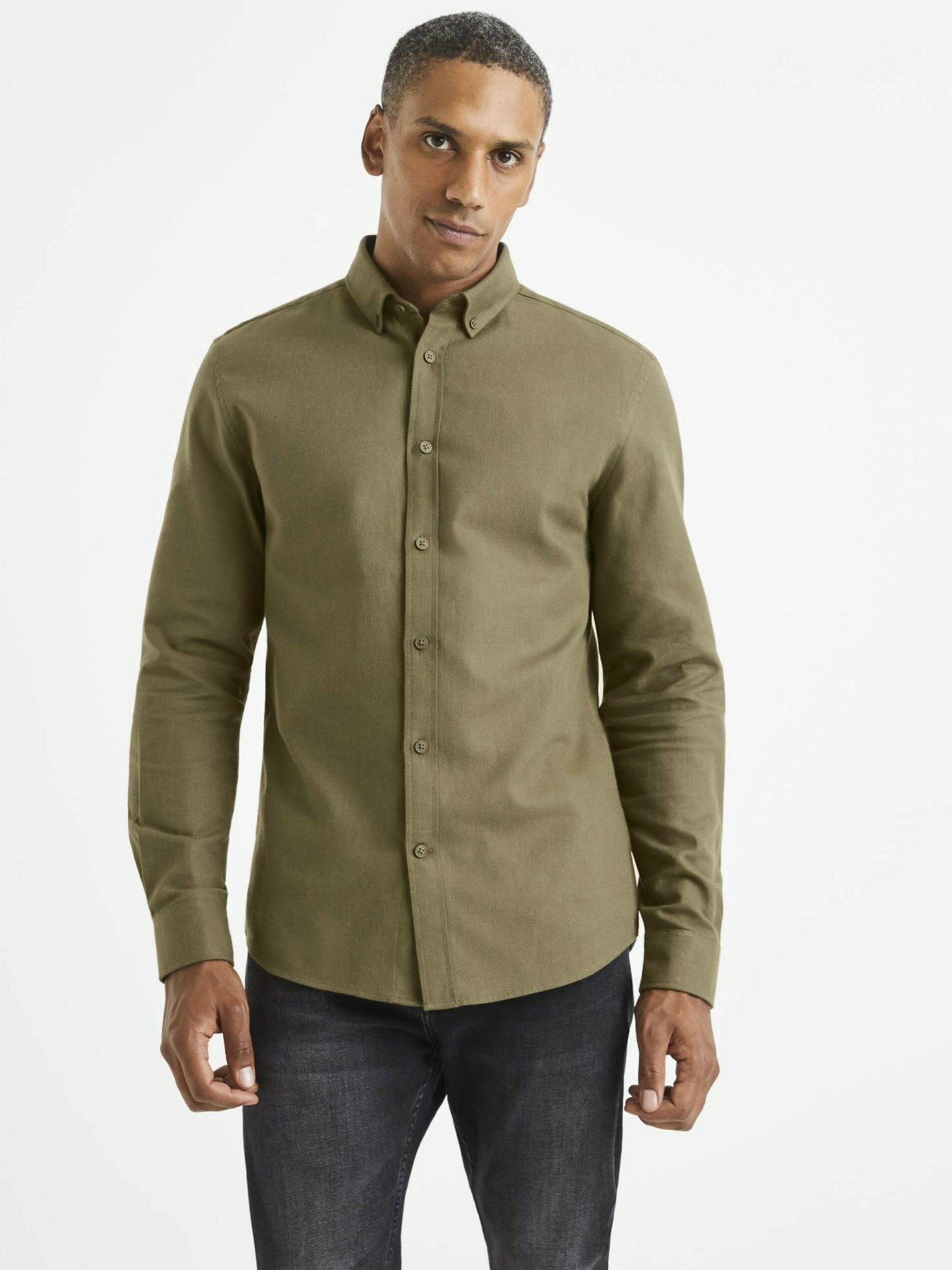 Kaki moška srajca Ombre Clothing
