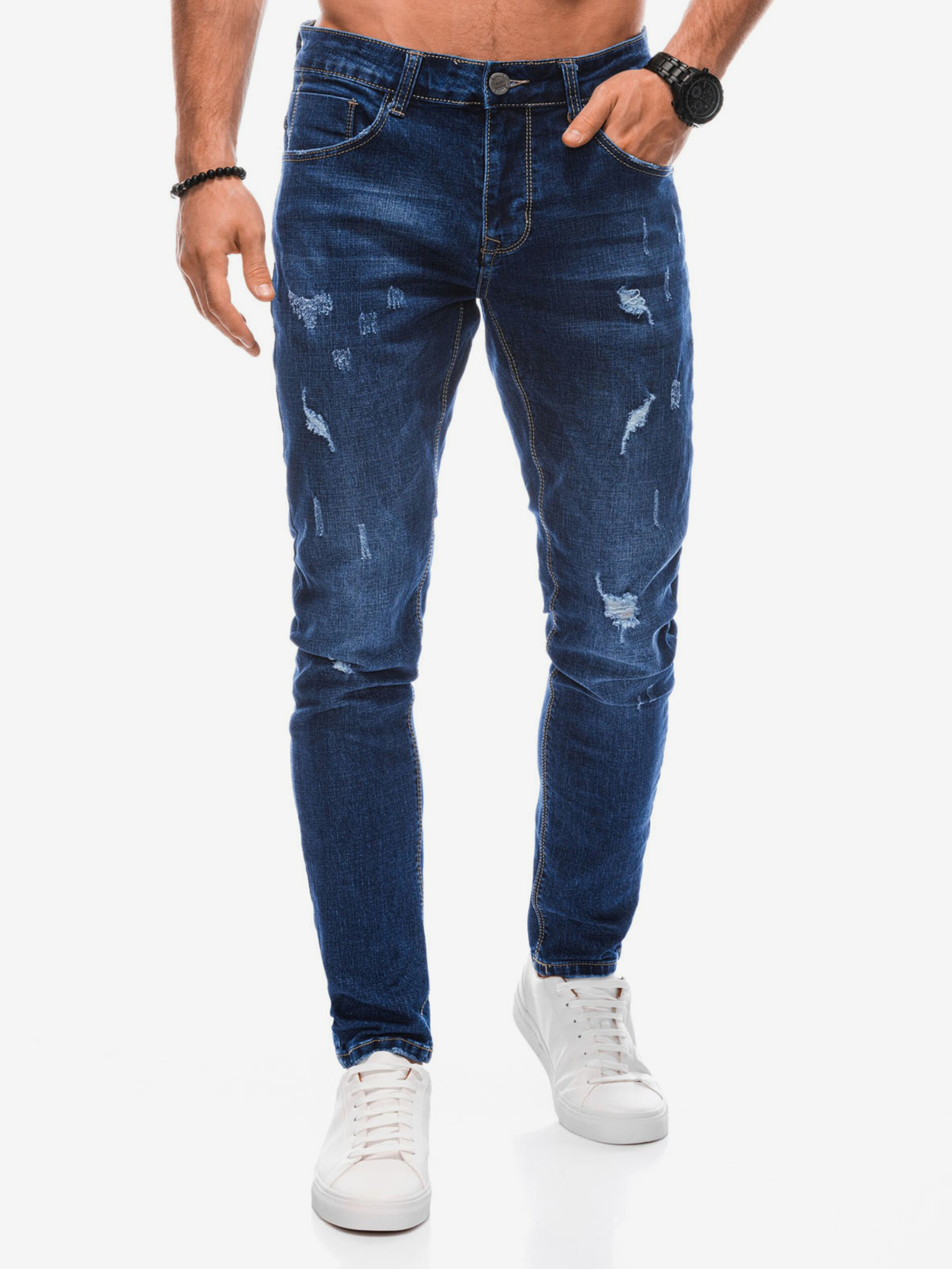 Moške klasične sprane kavbojke REGULAR FIT modre barve Ombre oblačila