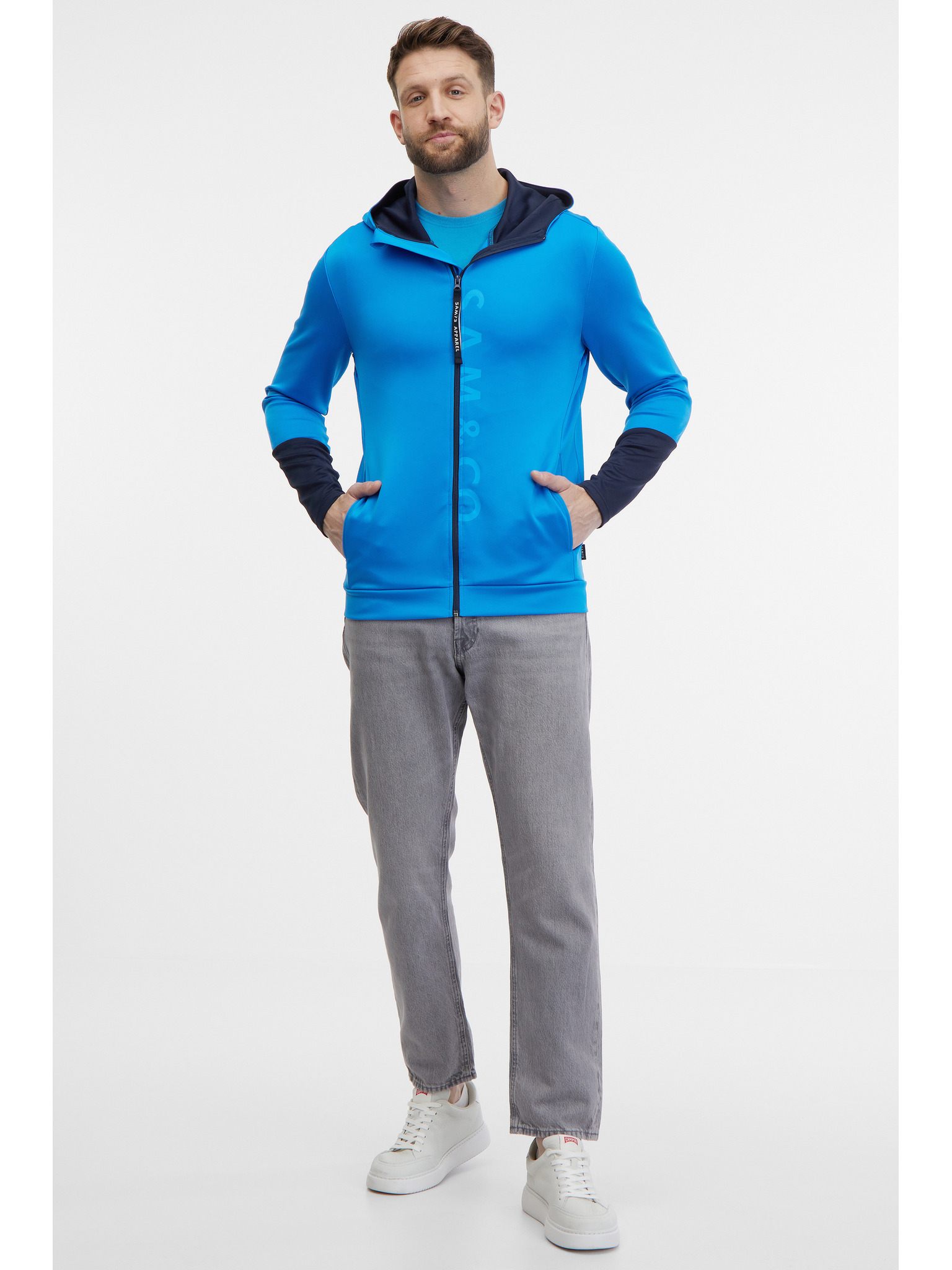 Modra moška kapuca z zadrgo SAM 73 Emanuel