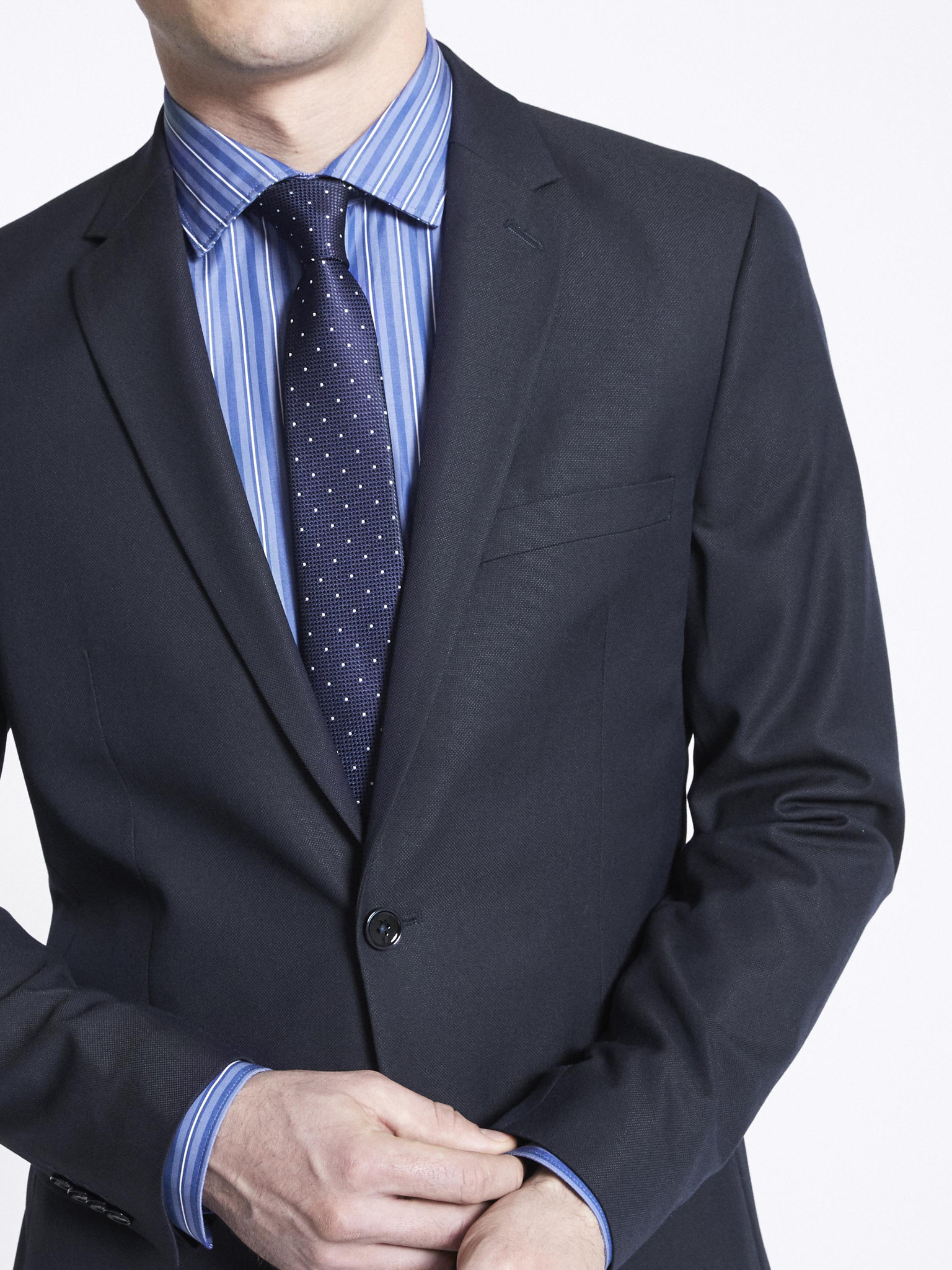 Moški temno modri blazer SLIM iz rahlo strukturiranega pletiva