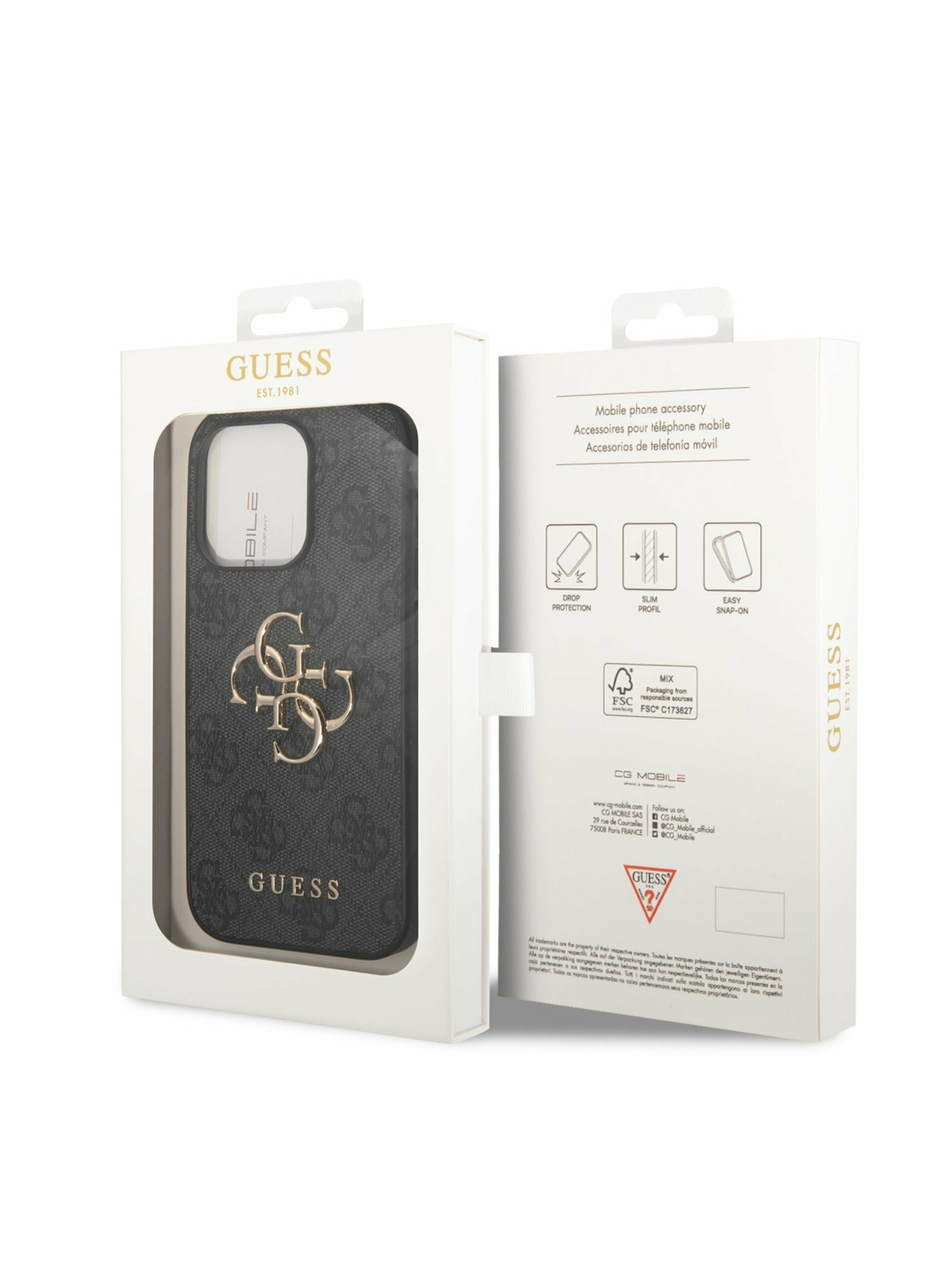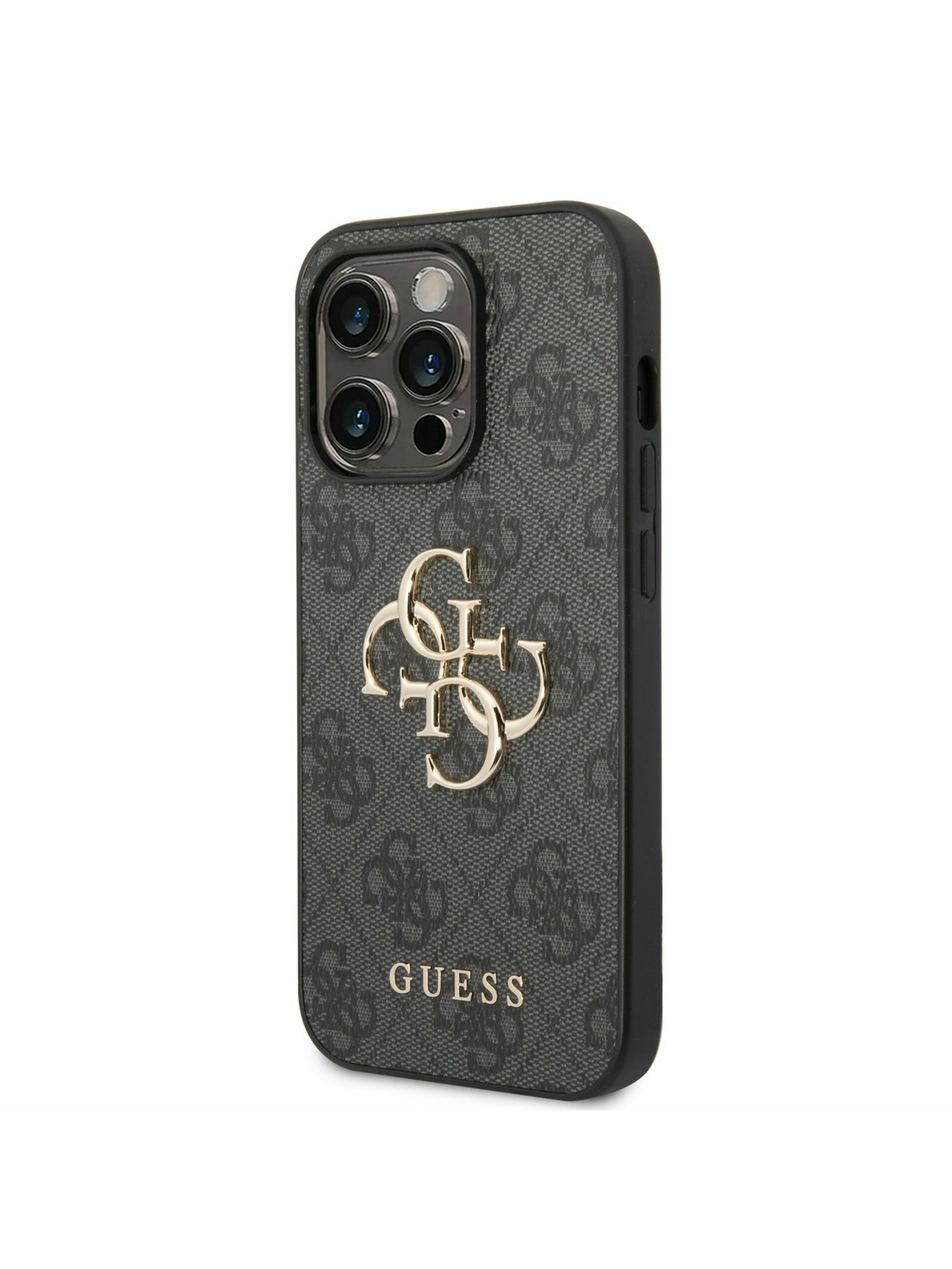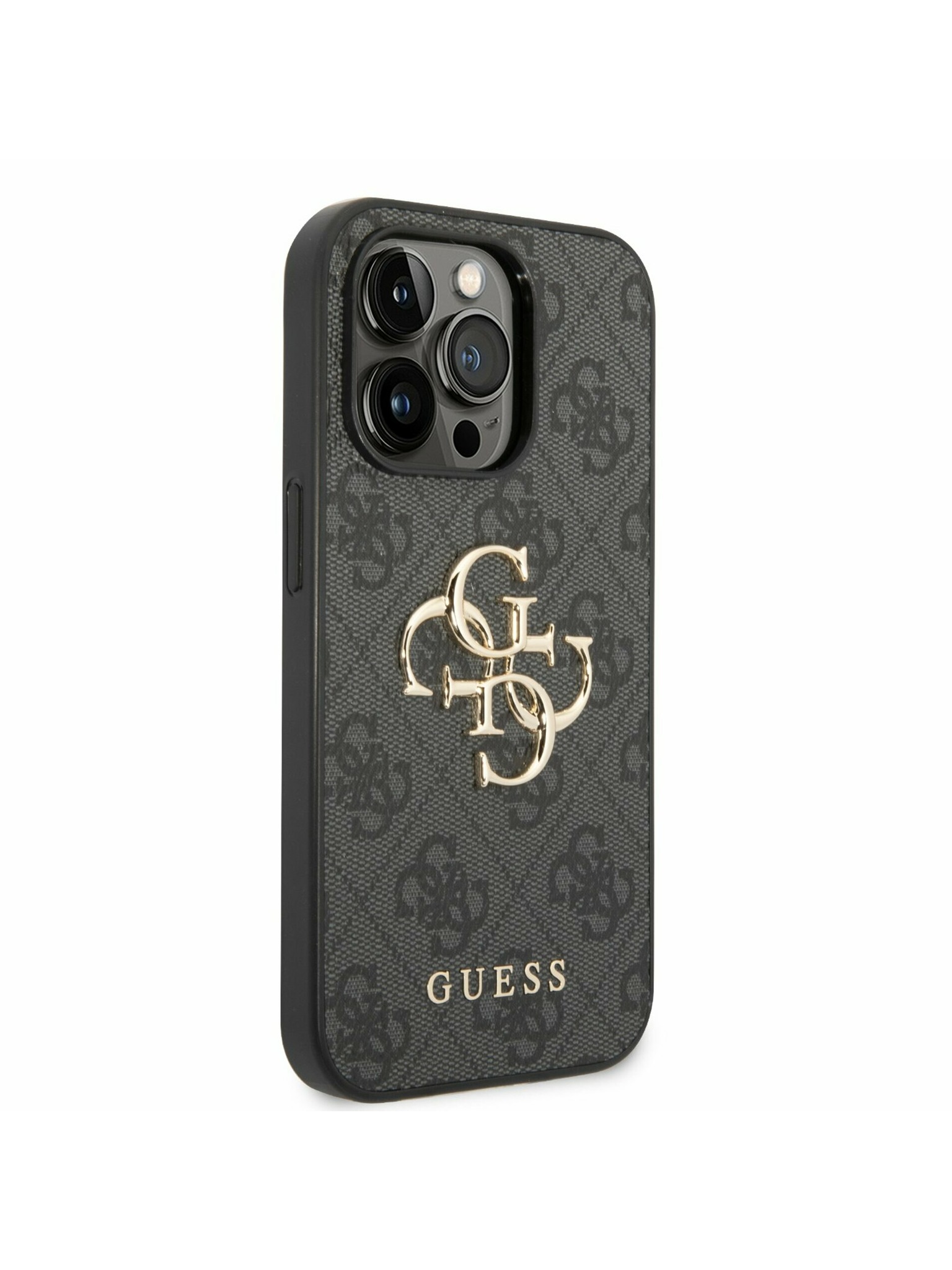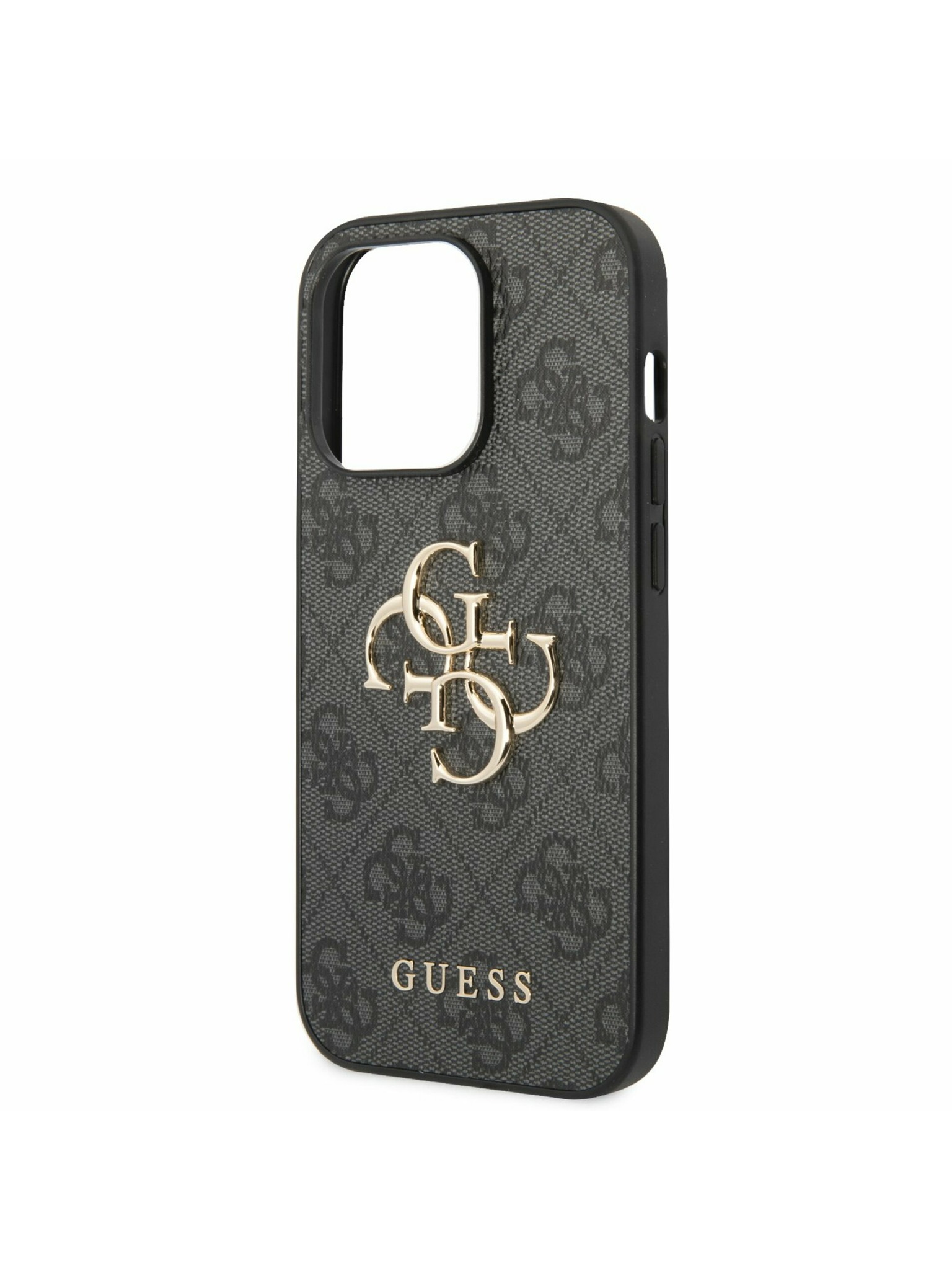 Guess PU Grained 4G Kovinski Logo Zadnji ovitek za iPhone 16e Črn
