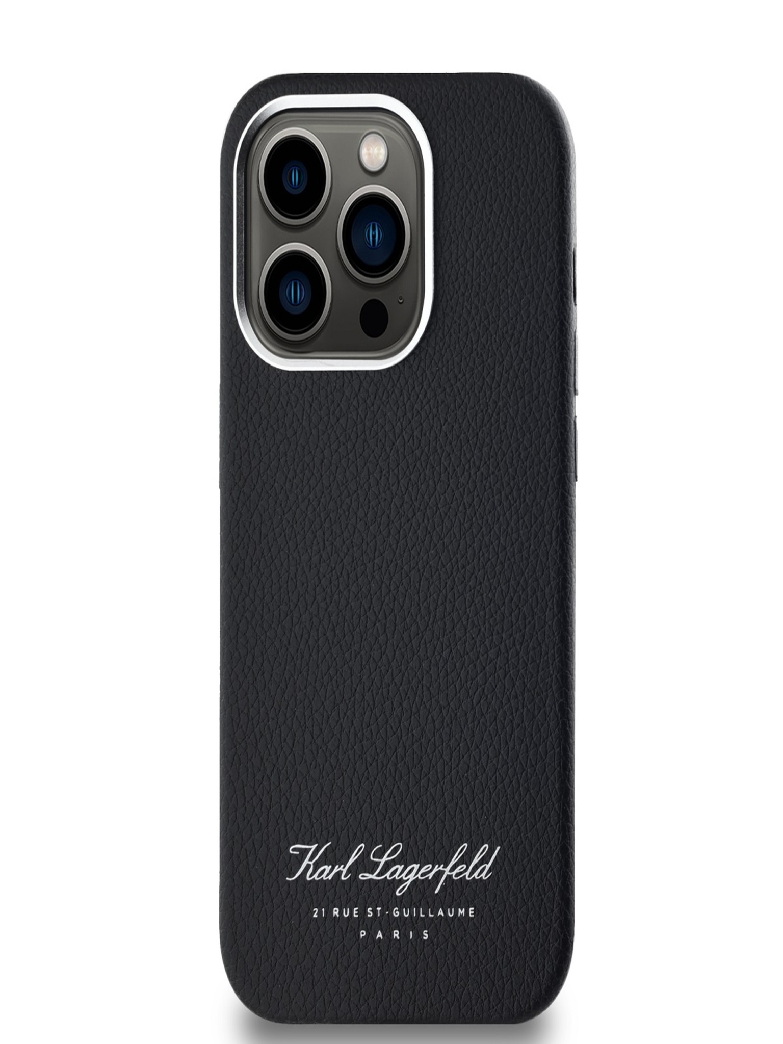 Karl Lagerfeld Grained PU K&CH Glave Zadnji Pokrov za iPhone 16 Črn