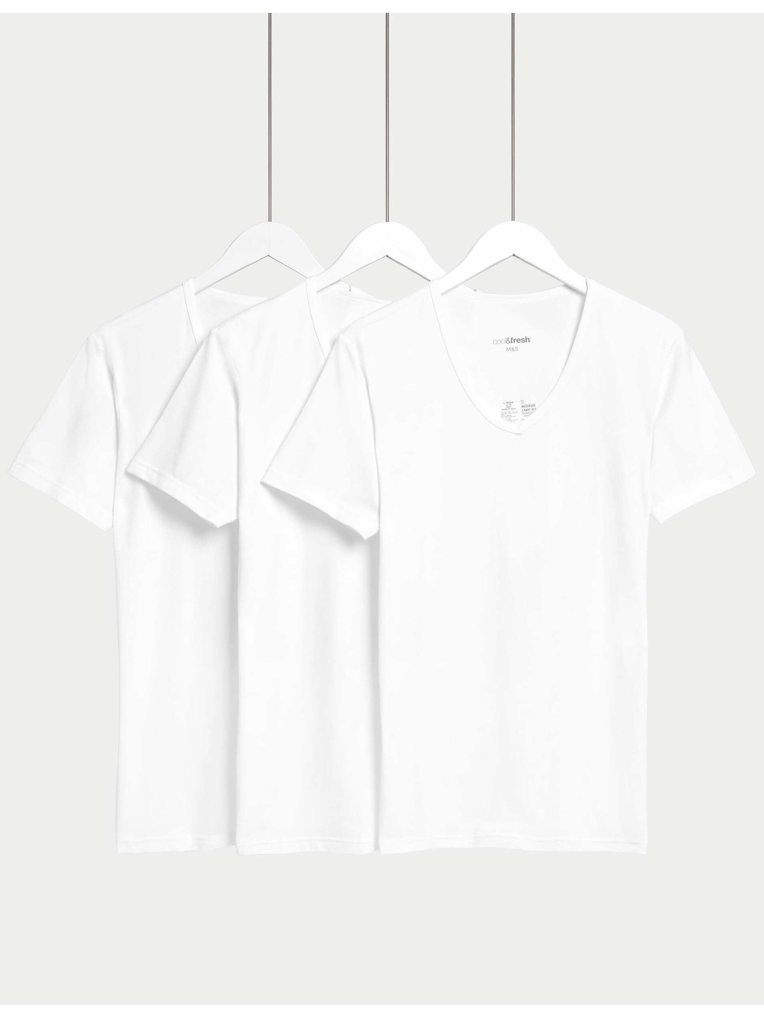 Komplet treh moških osnovnih majic v beli barvi s tehnologijo Marks & Spencer Cool & Fresh™