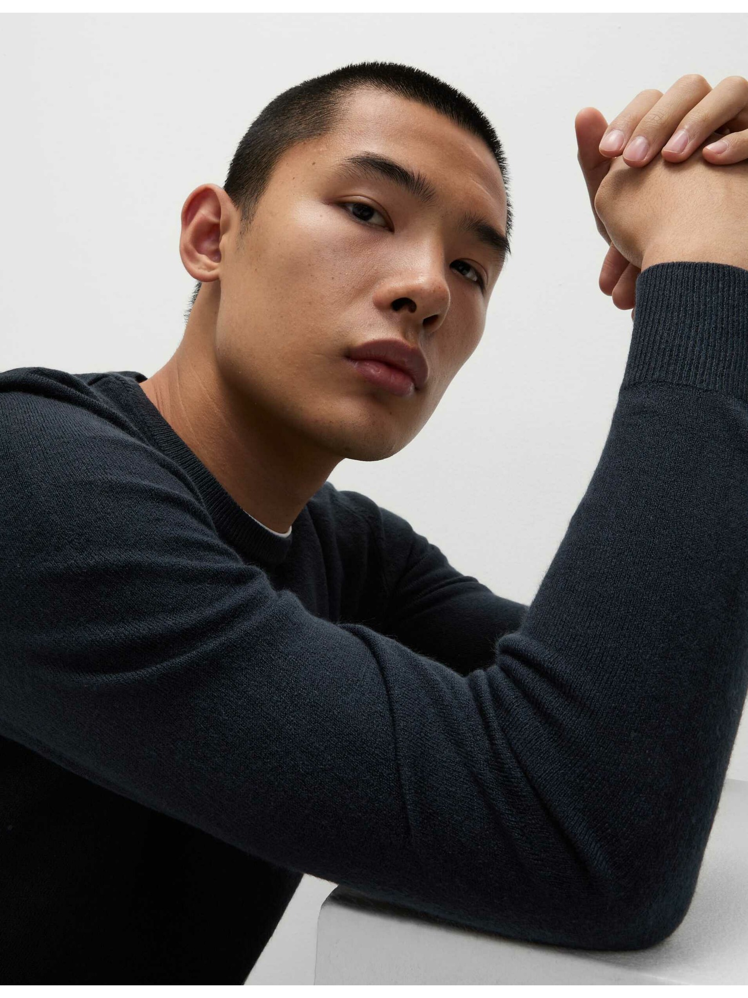 Rebrast pulover z ovratnikom, iz izjemno mehke preje z примесjo volne Marks & Spencer mornarsko modra