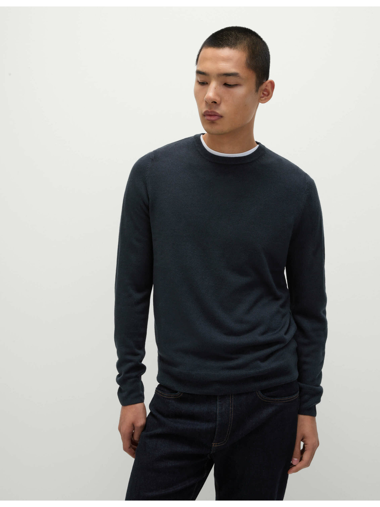 Temno moder volneni osnovni pulover Celio Semerirond