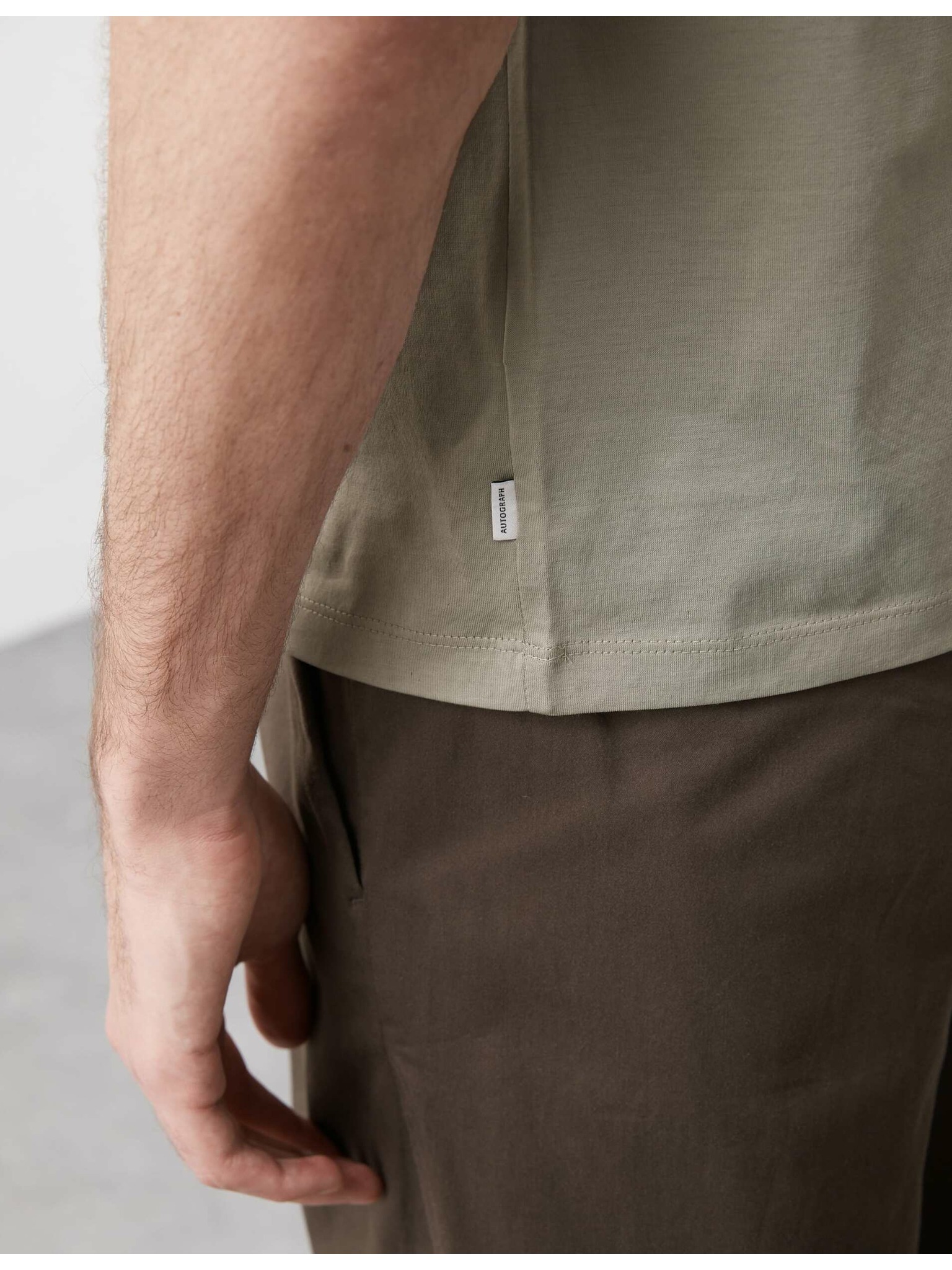 Moško majico s kontrastnimi vstavki in V-izrezom - bež